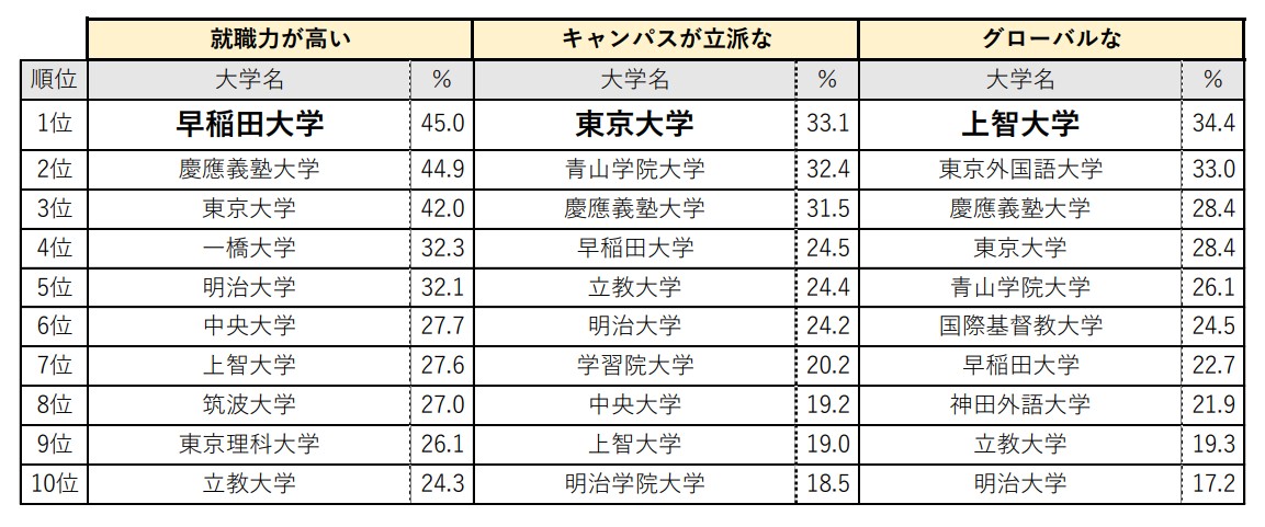 「グローバルな」イメージ大学ランキング、関東・甲信越2位は東京外大、では1位は?