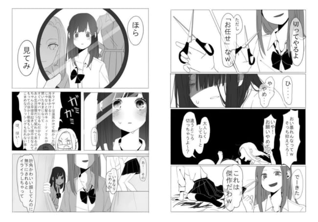 “いじめっ子風”女子高生が別の生徒の髪を切る漫画 意外な展開が「心に染みた」