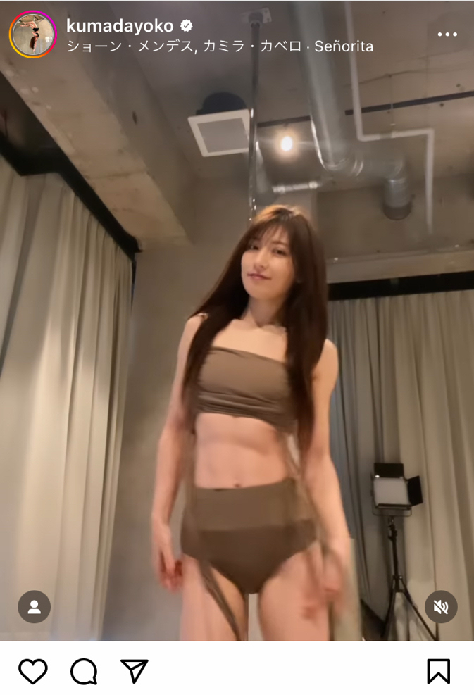 熊田曜子、優雅なポールダンス披露 美しい腹筋も