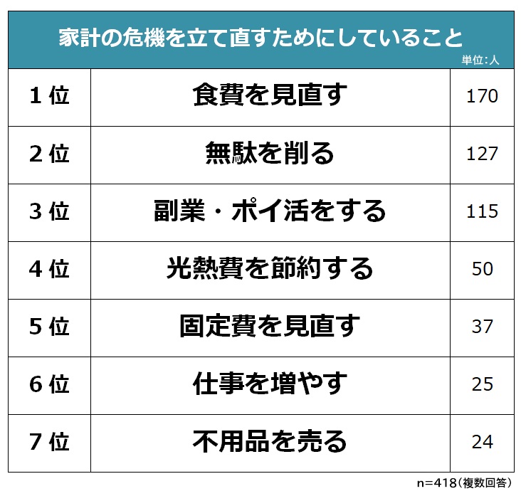 “家計の危機を立て直す方法ランキング” 2位「収入を増やす&支出を減らす」を上回った1位は? “具体策”トップ3も