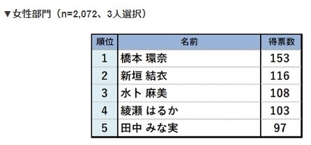 「リス顔でかわいい女性芸能人」ランキング 3位「橋本環奈」2位「小芝風花」…1位は“小顔&笑顔が魅力的”?