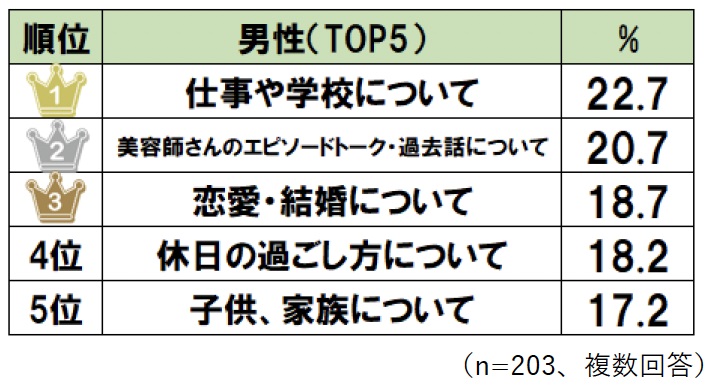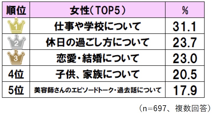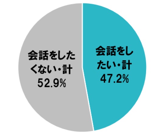 【美容室】美容師と「会話したくない」 男女2000人が回答した“いやだった”会話 「Q.あなたは美容室で会話をしたいですか?」の回答 「Q.美容師さんとの会話が良かった/楽しかったから、同じ美容室に『また行こう』と思ったことはありますか?」の回答 「Q.美容師さんとの会話で楽しかった/役に立った話題について、あてはまるものをすべてお選びください」の男性の回答 「Q.美容師さんとの会話で楽しかった/役に立った話題について、あてはまるものをすべてお選びください」の女性の回答 「Q.美容師さんとの会話が嫌だった/つまらなかったから、同じ美容室に『もう行かない』と思ったことはありますか?」の回答 「Q.美容師さんと会話をしたくない理由について、あてはまるものをすべてお選びください」の回答 「Q. 美容師さんと『あまり会話をしたくない』『会話をしたくない』と回答した人にお伺いします。美容師さんと会話をしたくない理由について、あてはまるものをすべてお選びください」の男性の回答 「Q. 美容師さんと『あまり会話をしたくない』『会話をしたくない』と回答した人にお伺いします。美容師さんと会話をしたくない理由について、あてはまるものをすべてお選びください」の女性の回答 関連記事 “飛び過ぎるバット”の発想を応用したドライバーの実力を検証 (PR)ミズノ 【最新ヘアスタイル】2026年春夏トレンドは“動き” レイヤー、ウルフ…美容師が解説 本間ゴルフ・小川社長が語る“変革の真意” 「TW777」が示す挑戦の第一歩 (PR)本間ゴルフ 【松のや】熟成チルドポーク160グラム「超厚切りロースかつ」発売 「ロースかつ」の“重量2倍” 猫顔でイケメン! 男性芸能人ランキング 3位「綾野剛」2位「吉沢亮」…1位は“小顔でシャープな顔立ち”の芸能人? 記事ページに戻る