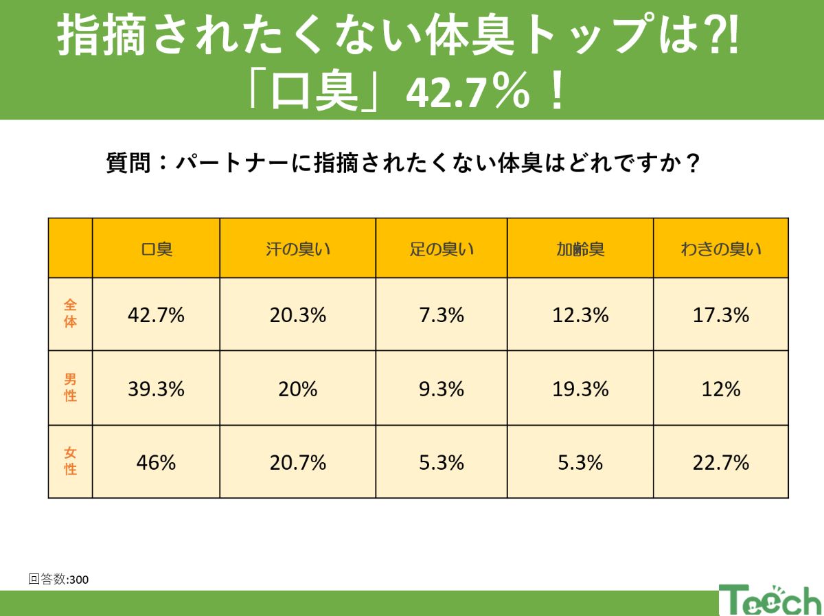 圧倒的トップは「汗の臭い」超え! パートナーに指摘されたくない「体臭」…男女の回答は?