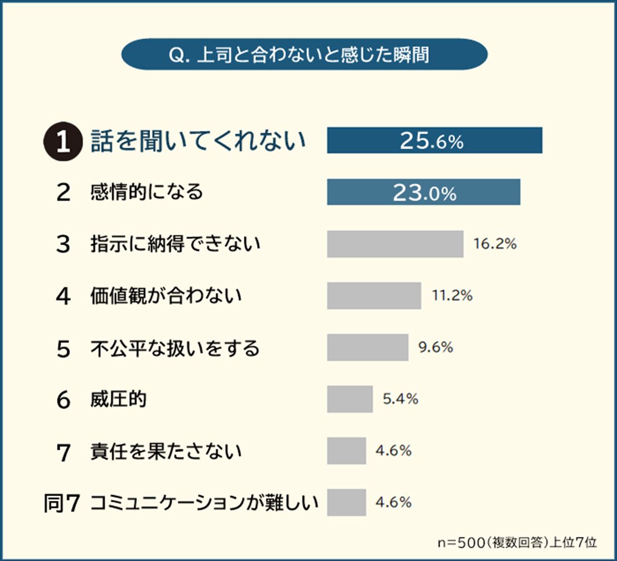 社会人の男女500人が回答「上司と合わないと感じた瞬間」ランキング! 2位「感情的になる」…1位は?