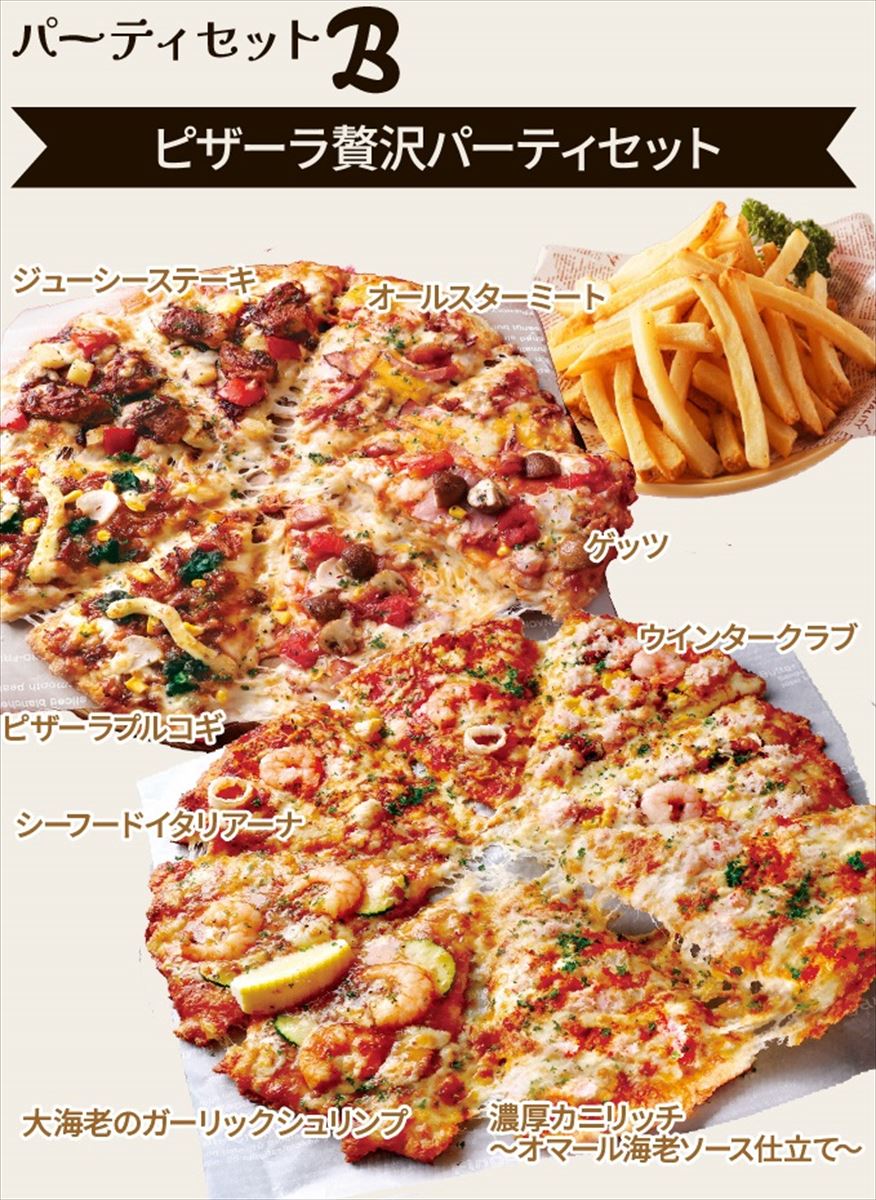 【ピザーラ】1000円お得になる期間限定メニュー「おすすめNo.1」「贅沢」登場! 人気「クォーターピザ」2種と「2倍盛りポテト」のパーティーセット