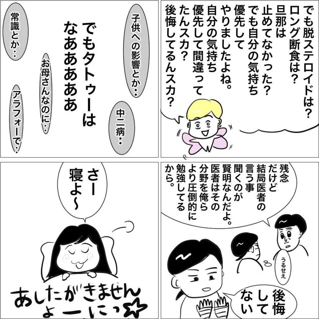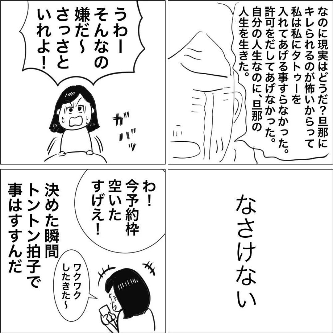 【漫画】「タトゥー」を入れたいけど、夫がキレるかも…葛藤する女性が下した“決断”に「すてき」 漫画「アラフォーでタトゥー入れた話」(ナツコ!さん提供) 漫画「アラフォーでタトゥー入れた話」(ナツコ!さん提供) 漫画「アラフォーでタトゥー入れた話」(ナツコ!さん提供) 漫画「アラフォーでタトゥー入れた話」(ナツコ!さん提供) 漫画「アラフォーでタトゥー入れた話」(ナツコ!さん提供) 漫画「アラフォーでタトゥー入れた話」(ナツコ!さん提供) 漫画「アラフォーでタトゥー入れた話」(ナツコ!さん提供) 漫画「アラフォーでタトゥー入れた話」(ナツコ!さん提供) 漫画「アラフォーでタトゥー入れた話」(ナツコ!さん提供) 漫画「アラフォーでタトゥー入れた話」(ナツコ!さん提供) 関連記事 “飛び過ぎるバット”の発想を応用したドライバーの実力を検証 (PR)ミズノ 【漫画】「口答えすんな!」怒鳴る工場長と壊れていく先輩… 整備士が絶望した“地獄の職場”に「これが日常なの?」 本間ゴルフ・小川社長が語る“変革の真意” 「TW777」が示す挑戦の第一歩 (PR)本間ゴルフ 【最新ヘアスタイル】2026年春夏トレンドは“動き” レイヤー、ウルフ…美容師が解説 浴室のピンク汚れ、正体は細菌!? 増殖防ぐために「最後に出る人」がすべき2つのこととは【TOTOが紹介】 記事ページに戻る