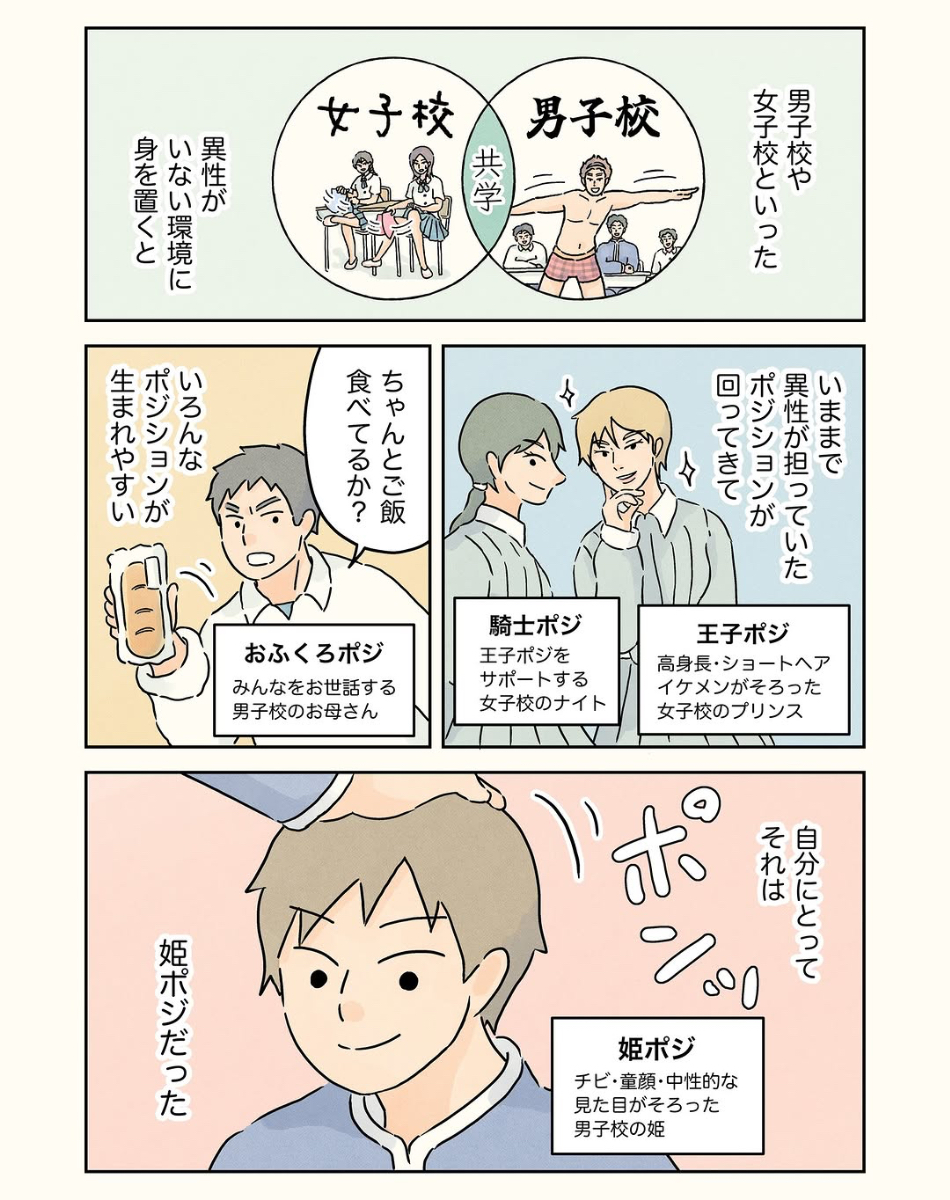 中高6年間通った男子校ライフをつづったエッセー漫画『男子校の生態』(KADOKAWA)第3巻を2025年3月に発売。