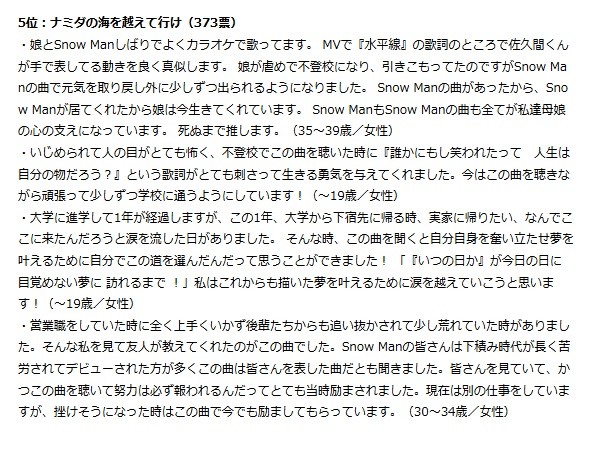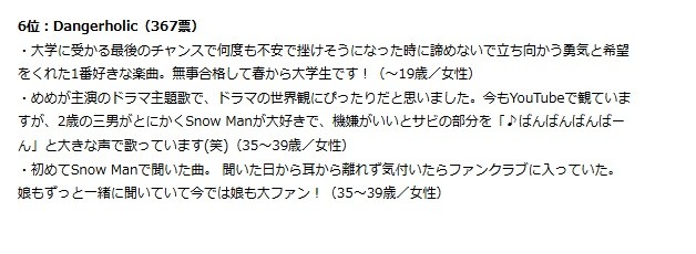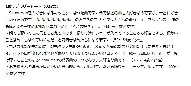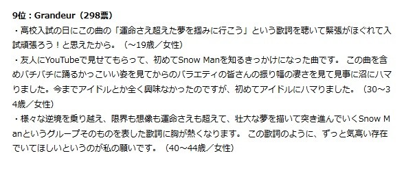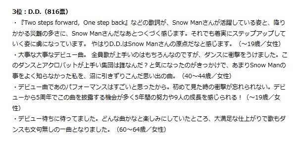 「Snow Man」ファンが選んだ“推し曲”ランキング 3位「D.D.」…2位&1位は?
