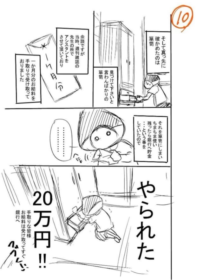 初めての一人暮らしで“空き巣”に遭った経験を漫画に タンスの給料20万円が盗まれ… 初めて一人暮らしをした時の出来事を描いた漫画のカット=栗田あぐり(agurikurita)さん提供 初めて一人暮らしをした時の出来事を描いた漫画のカット=栗田あぐり(agurikurita)さん提供 初めて一人暮らしをした時の出来事を描いた漫画のカット=栗田あぐり(agurikurita)さん提供 初めて一人暮らしをした時の出来事を描いた漫画のカット=栗田あぐり(agurikurita)さん提供 初めて一人暮らしをした時の出来事を描いた漫画のカット=栗田あぐり(agurikurita)さん提供 初めて一人暮らしをした時の出来事を描いた漫画のカット=栗田あぐり(agurikurita)さん提供 初めて一人暮らしをした時の出来事を描いた漫画のカット=栗田あぐり(agurikurita)さん提供 初めて一人暮らしをした時の出来事を描いた漫画のカット=栗田あぐり(agurikurita)さん提供 初めて一人暮らしをした時の出来事を描いた漫画のカット=栗田あぐり(agurikurita)さん提供 初めて一人暮らしをした時の出来事を描いた漫画のカット=栗田あぐり(agurikurita)さん提供 初めて一人暮らしをした時の出来事を描いた漫画のカット=栗田あぐり(agurikurita)さん提供 初めて一人暮らしをした時の出来事を描いた漫画のカット=栗田あぐり(agurikurita)さん提供 初めて一人暮らしをした時の出来事を描いた漫画のカット=栗田あぐり(agurikurita)さん提供 初めて一人暮らしをした時の出来事を描いた漫画のカット=栗田あぐり(agurikurita)さん提供 関連記事 “飛び過ぎるバット”の発想を応用したドライバーの実力を検証 (PR)ミズノ 【漫画】「つらい時も支えてくれた相棒」 18年間連れ添った愛犬を亡くして… 涙と感謝を込めた物語 本間ゴルフ・小川社長が語る“変革の真意” 「TW777」が示す挑戦の第一歩 (PR)本間ゴルフ 【漫画】「漬けマグロも漬けえびも同じ味やん!」 深夜に突然しゃべり出した彼氏 “ハッキリすぎる寝言”に困惑&爆笑 【漫画】娘が「食べた」と言っていたパンがゴミ箱に! 母が直面した「信じがたい嘘」と子育ての難しさ 記事ページに戻る