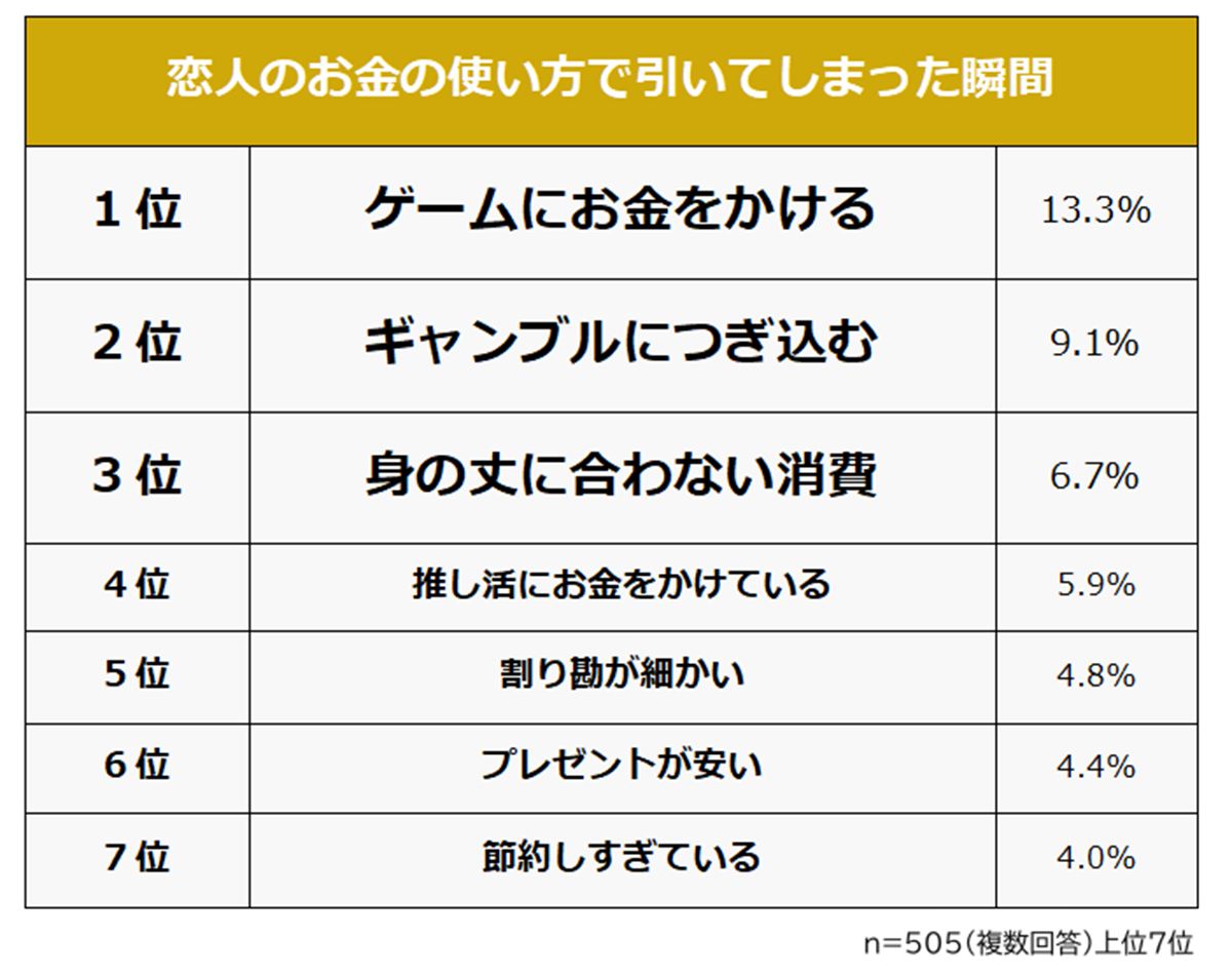 【恋人】の「お金の使い方で引いた瞬間」ランキング 2位「ギャンブルにつぎ込む」を上回った1位の《行動》は?