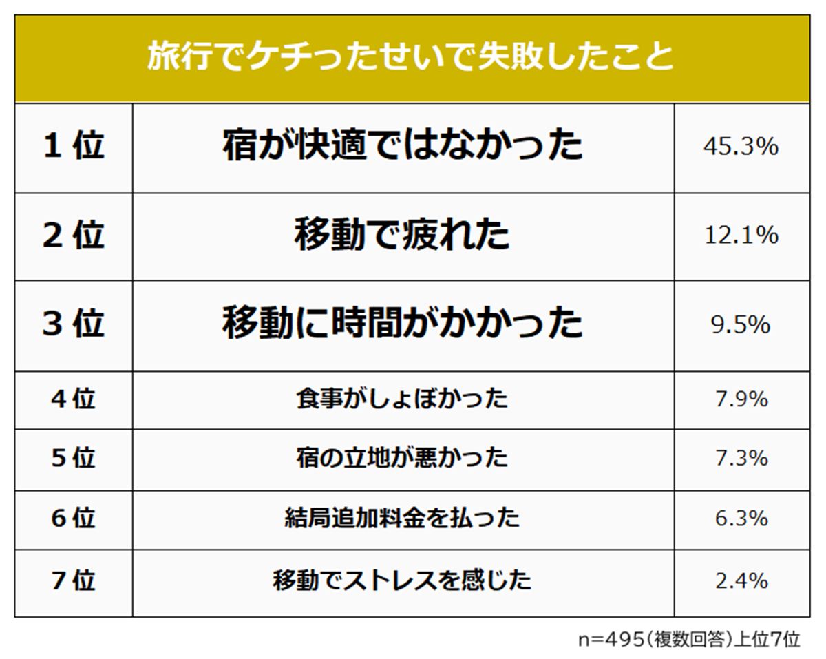 【旅行】で「ケチって失敗したこと」ランキング 3位「移動に時間がかかった」2位「移動で疲れた」…“圧倒的”1位は?