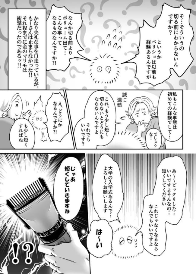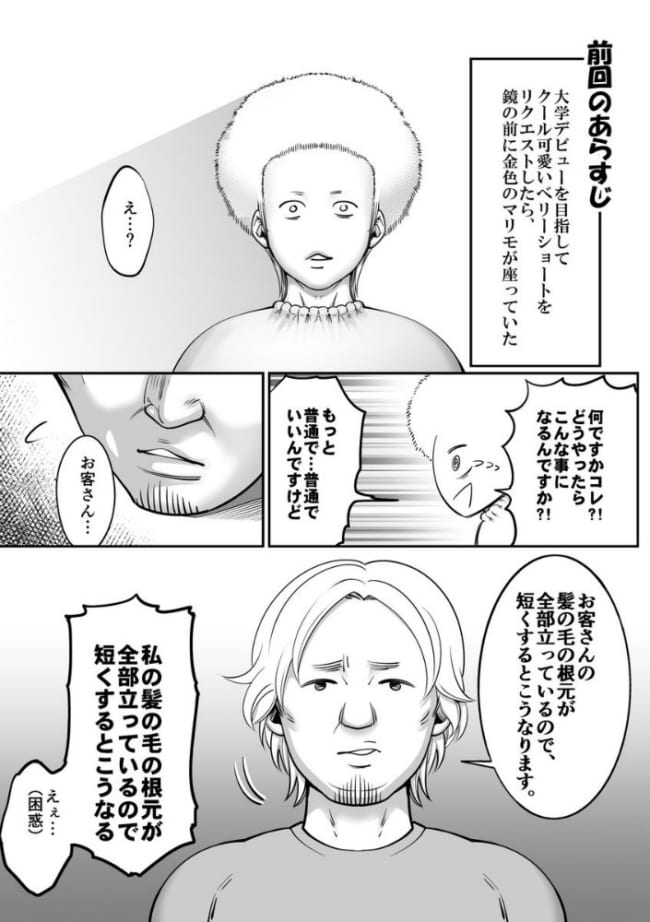 ショートヘアを注文したら“金色ゴリラ”になった体験漫画 「吹き出した」「ひどい」の声 漫画「憧れのベリーショートとわたし(1)」=も~(@mori2ta)さん提供 漫画「憧れのベリーショートとわたし(1)」=も~(@mori2ta)さん提供 漫画「憧れのベリーショートとわたし(1)」=も~(@mori2ta)さん提供 漫画「憧れのベリーショートとわたし(1)」=も~(@mori2ta)さん提供 漫画「憧れのベリーショートとわたし(2)」=も~(@mori2ta)さん提供 漫画「憧れのベリーショートとわたし(2)」=も~(@mori2ta)さん提供 漫画「憧れのベリーショートとわたし(2)」=も~(@mori2ta)さん提供 漫画「憧れのベリーショートとわたし(2)」=も~(@mori2ta)さん提供 関連記事 “飛び過ぎるバット”の発想を応用したドライバーの実力を検証 (PR)ミズノ 【漫画】「つらい時も支えてくれた相棒」 18年間連れ添った愛犬を亡くして… 涙と感謝を込めた物語 本間ゴルフ・小川社長が語る“変革の真意” 「TW777」が示す挑戦の第一歩 (PR)本間ゴルフ 【漫画】「漬けマグロも漬けえびも同じ味やん!」 深夜に突然しゃべり出した彼氏 “ハッキリすぎる寝言”に困惑&爆笑 【漫画】娘が「食べた」と言っていたパンがゴミ箱に! 母が直面した「信じがたい嘘」と子育ての難しさ 記事ページに戻る