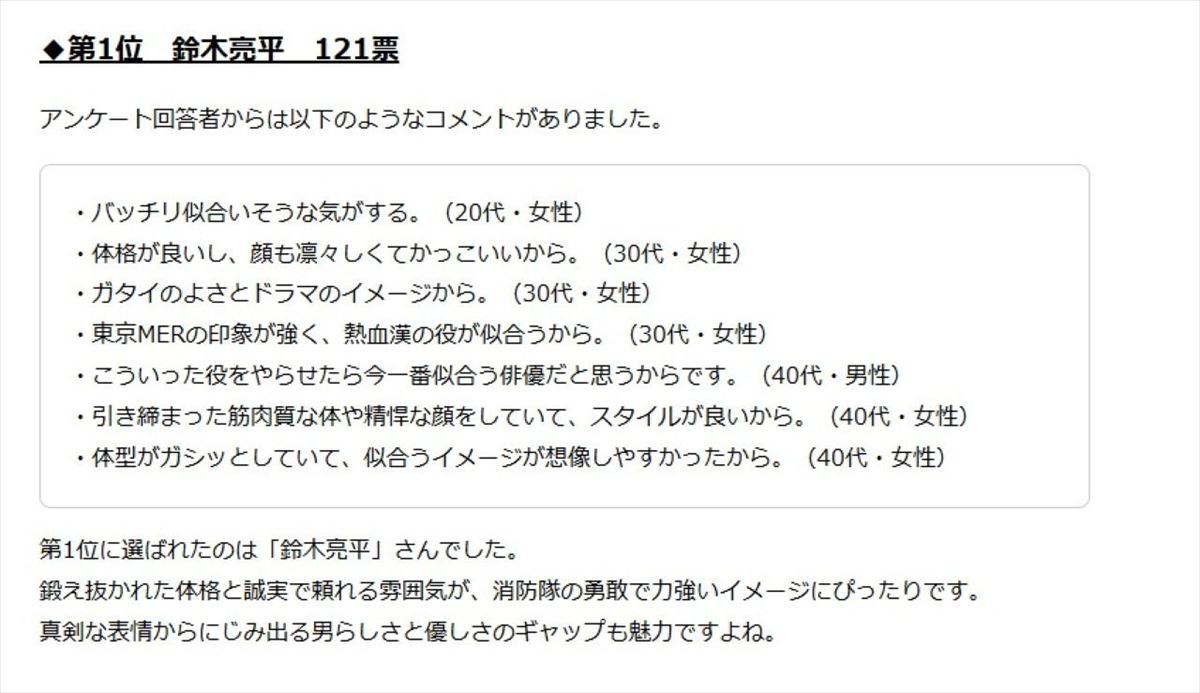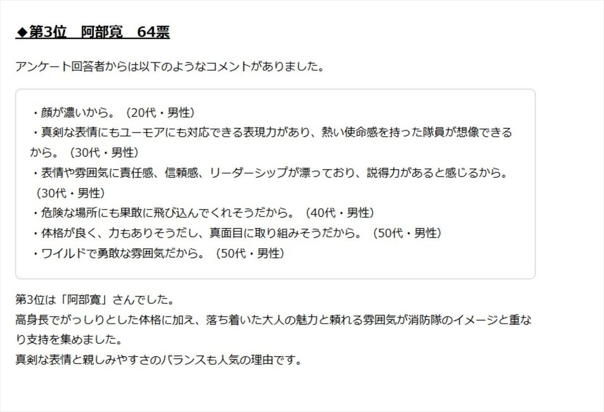 「消防隊」が似合いそうな有名人ランキング 3位「阿部寛」…2位&1位は?
