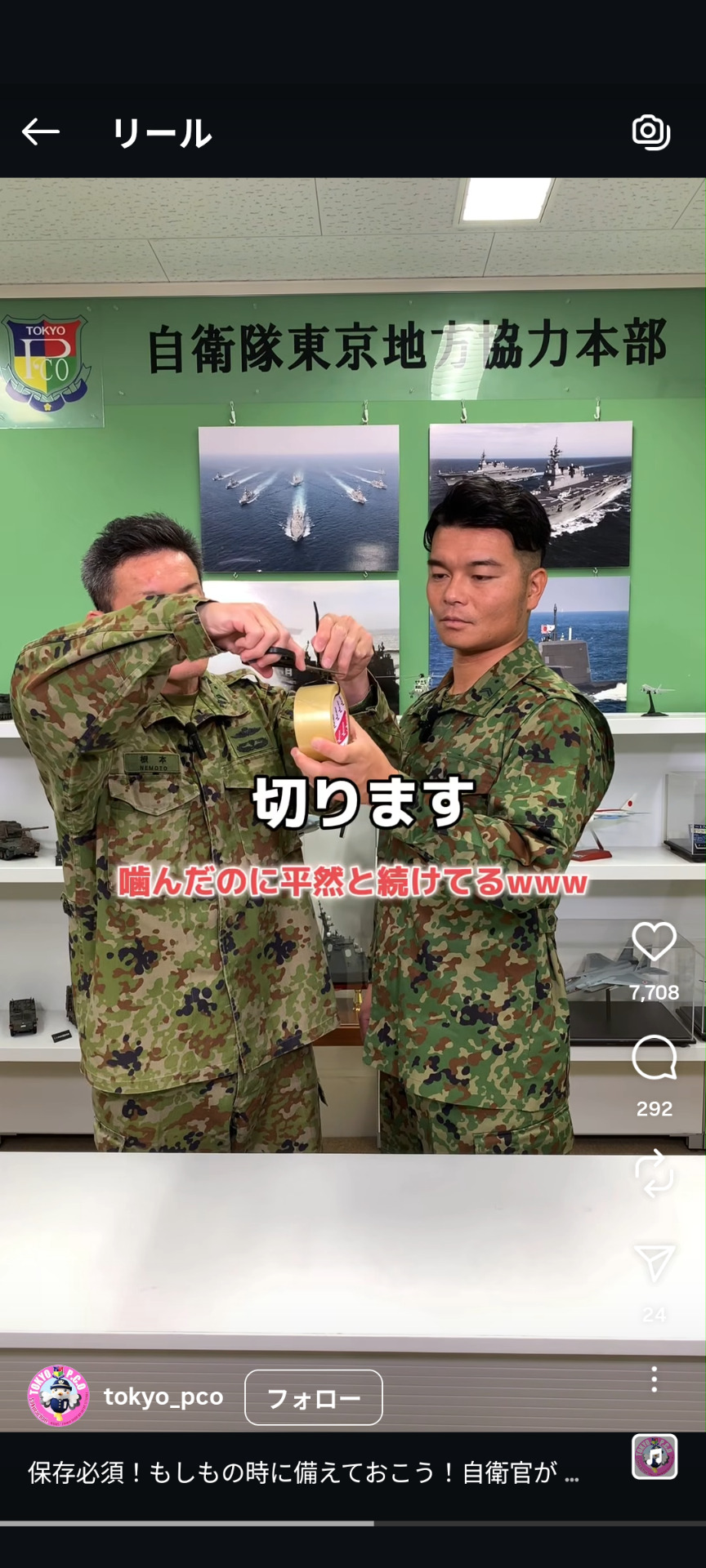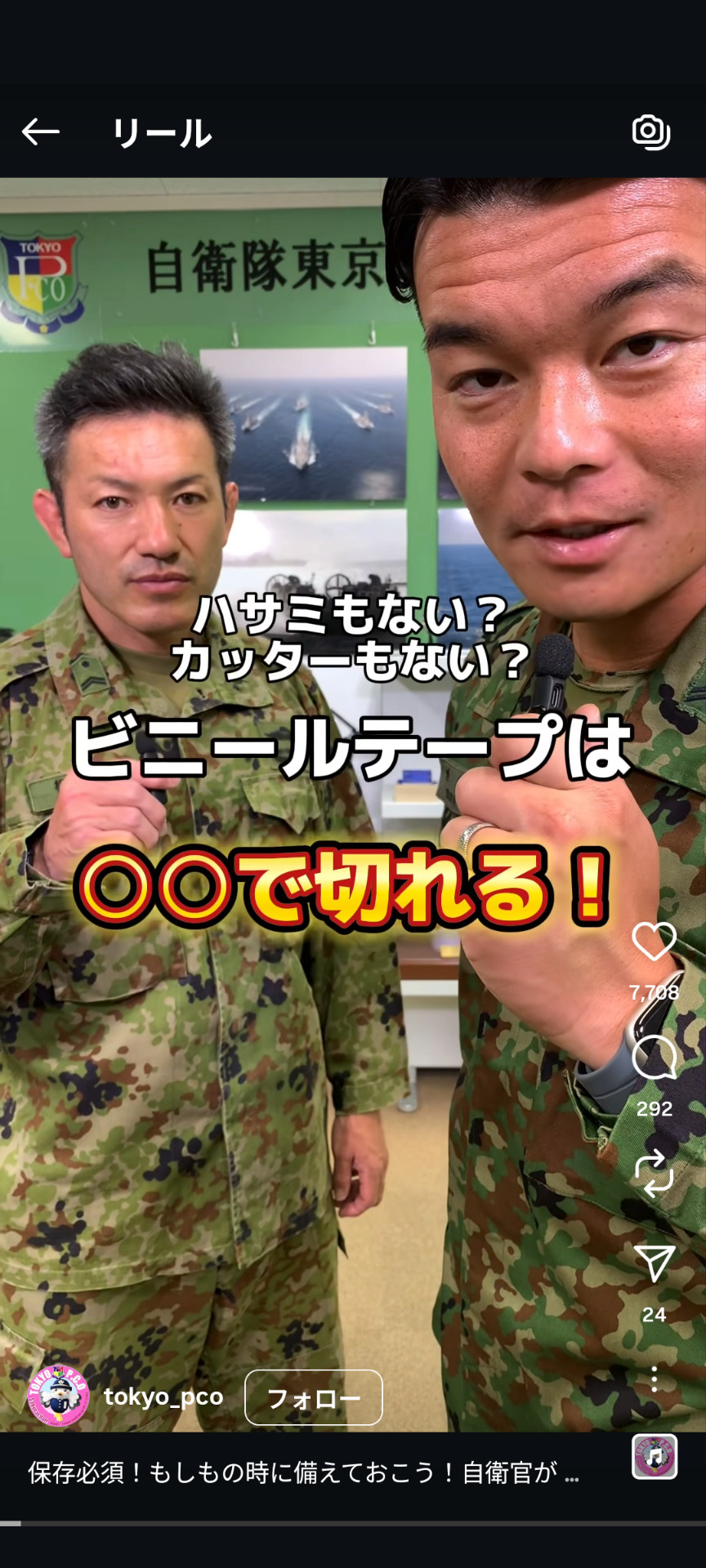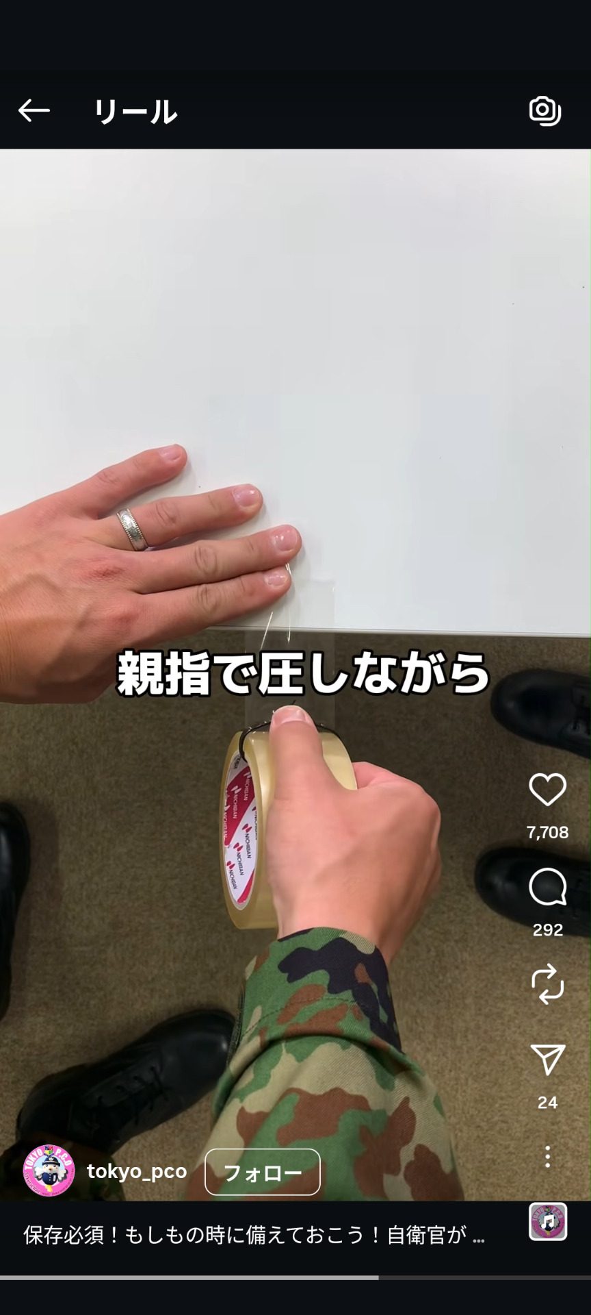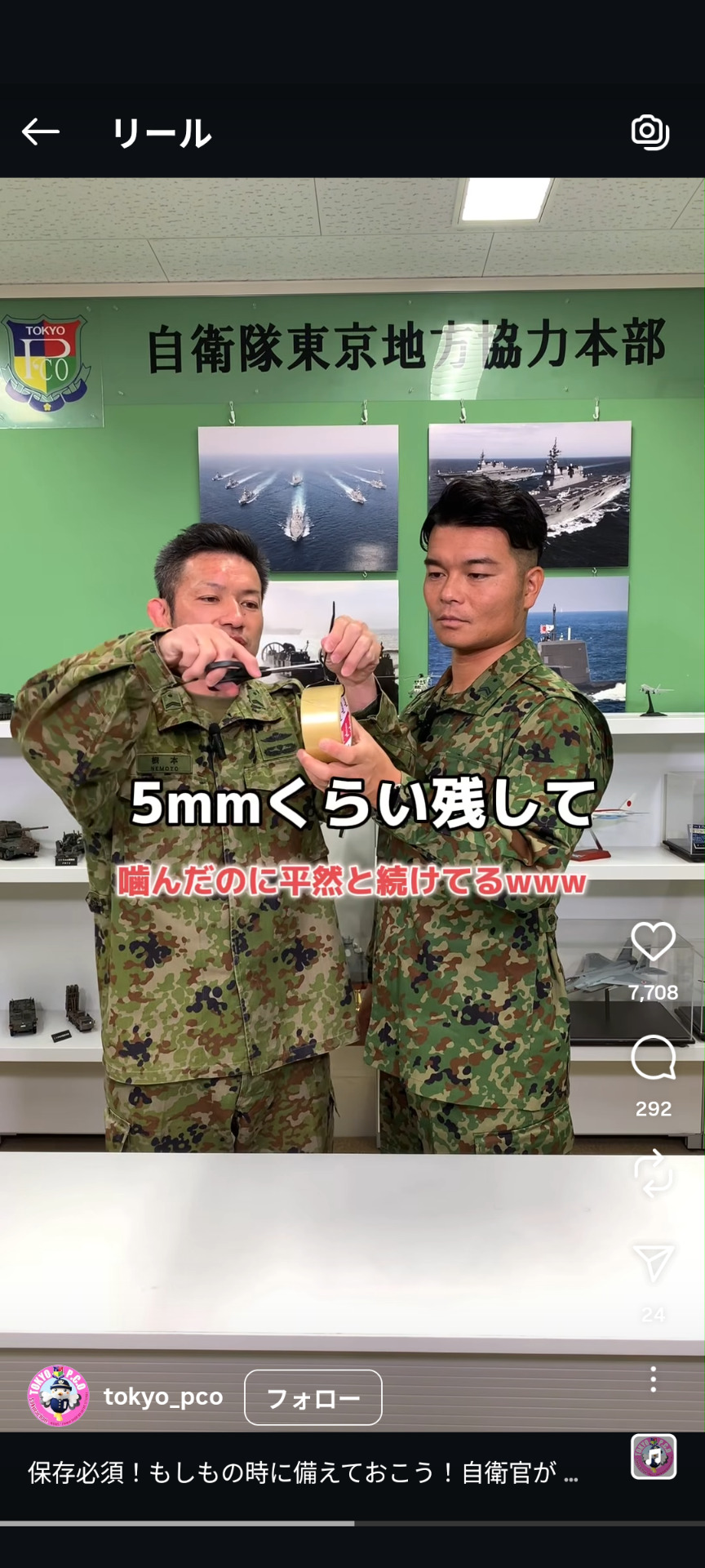 はさみがなくても「ビニールテープ」切れちゃう! 自衛隊の“ひと工夫”に「なるほど!」 自衛隊東京地方協力本部の公式インスタグラムアカウントより 自衛隊東京地方協力本部の公式インスタグラムアカウントより 自衛隊東京地方協力本部の公式インスタグラムアカウントより 自衛隊東京地方協力本部の公式インスタグラムアカウントより 自衛隊東京地方協力本部の公式インスタグラムアカウントより 自衛隊東京地方協力本部の公式インスタグラムアカウントより 自衛隊東京地方協力本部の公式インスタグラムアカウントより 自衛隊東京地方協力本部の公式インスタグラムアカウントより 自衛隊東京地方協力本部の公式インスタグラムアカウントより 自衛隊東京地方協力本部の公式インスタグラムアカウントより 自衛隊東京地方協力本部の公式インスタグラムアカウントより 自衛隊東京地方協力本部の公式インスタグラムアカウントより 自衛隊東京地方協力本部の公式インスタグラムアカウントより 自衛隊東京地方協力本部の公式インスタグラムアカウントより 自衛隊東京地方協力本部の公式インスタグラムアカウントより 自衛隊東京地方協力本部の公式インスタグラムアカウントより 自衛隊東京地方協力本部の公式インスタグラムアカウントより 関連記事 “飛び過ぎるバット”の発想を応用したドライバーの実力を検証 (PR)ミズノ 【漫画】「こんなこと起きる?」認知症の祖母の介護で知った“意外な一面”に「かわいい」「ほっこりする」 本間ゴルフ・小川社長が語る“変革の真意” 「TW777」が示す挑戦の第一歩 (PR)本間ゴルフ 【漫画】“女性専用車両”で「今いくつ?彼氏いるの?」ナンパされ、無視した結果… 最悪の展開に「え、怖っ…!」 入浴は寝る何時間前? ぐっすり眠るための常識とは…意外と知らない照明&コーヒーの落とし穴 記事ページに戻る