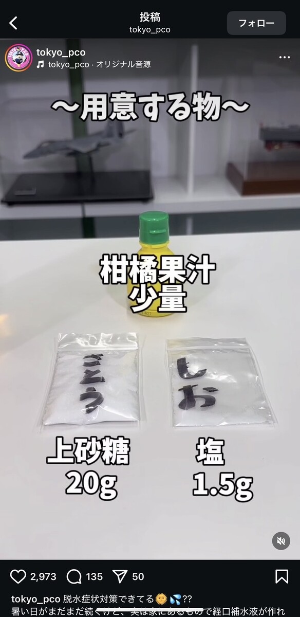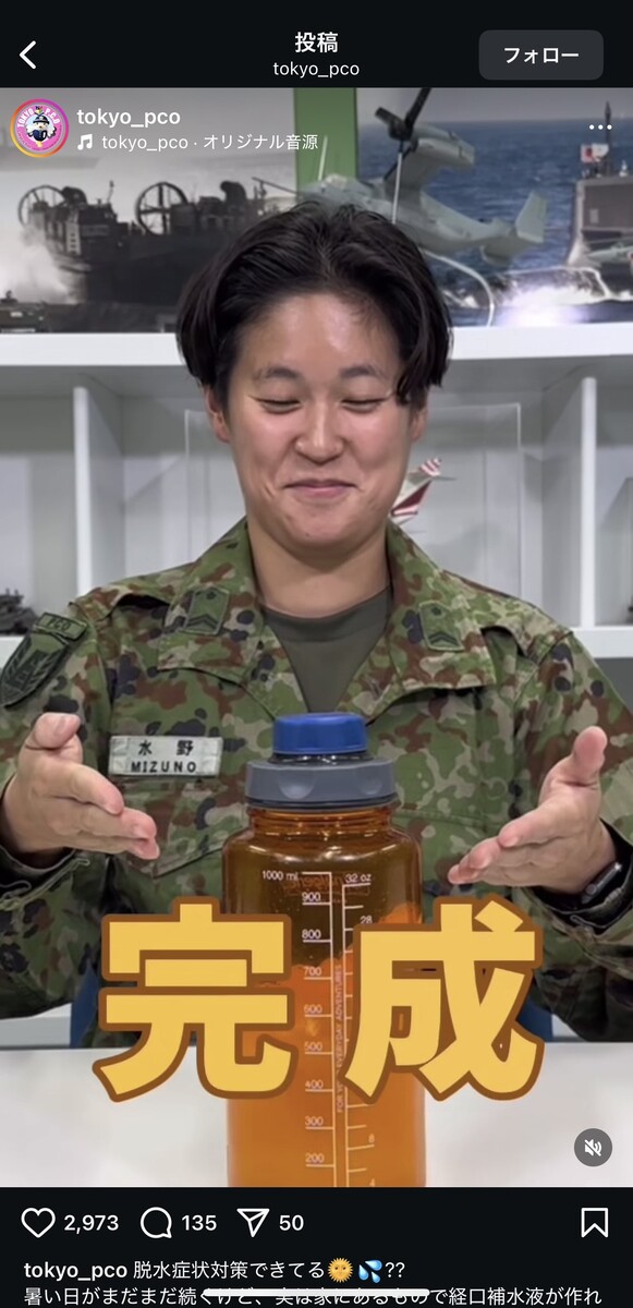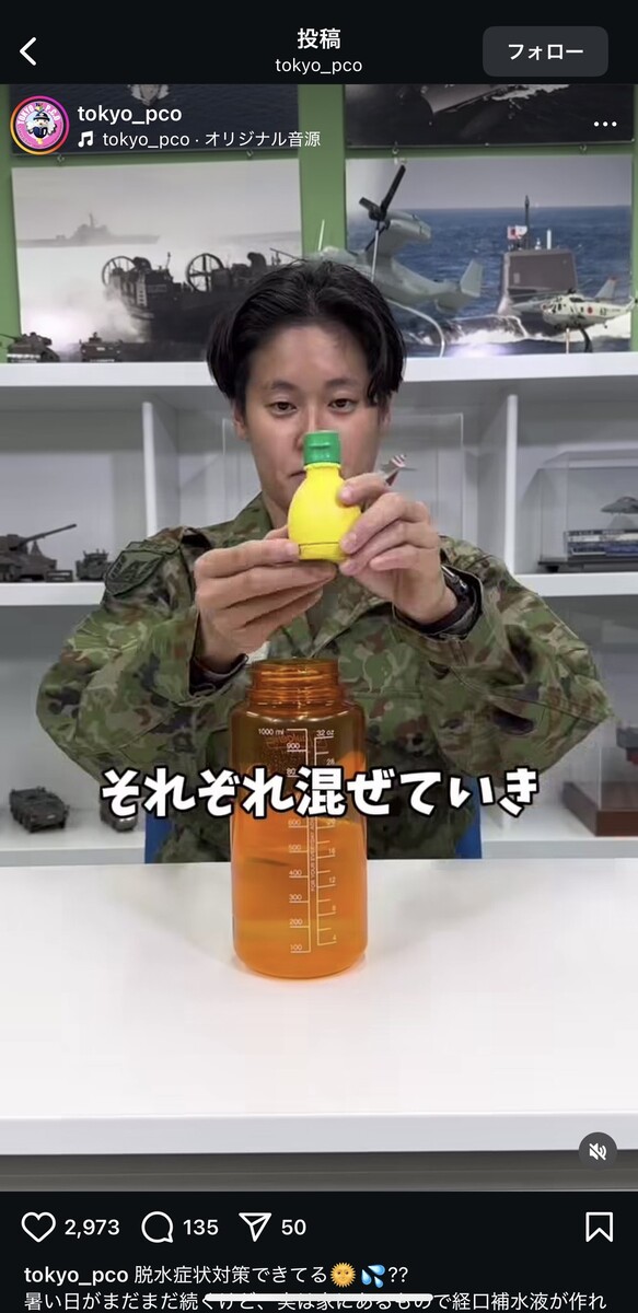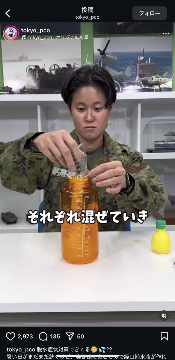 「脱水症状に効く飲み物」って簡単に作れるの!? 自衛隊直伝の“ライフハック”に「挑戦します」「意外とおいしい」 自衛隊東京地方協力本部の公式インスタグラムアカウントより 自衛隊東京地方協力本部の公式インスタグラムアカウントより 自衛隊東京地方協力本部の公式インスタグラムアカウントより 自衛隊東京地方協力本部の公式インスタグラムアカウントより 自衛隊東京地方協力本部の公式インスタグラムアカウントより 自衛隊東京地方協力本部の公式インスタグラムアカウントより 自衛隊東京地方協力本部の公式インスタグラムアカウントより 自衛隊東京地方協力本部の公式インスタグラムアカウントより 自衛隊東京地方協力本部の公式インスタグラムアカウントより 自衛隊東京地方協力本部の公式インスタグラムアカウントより 自衛隊東京地方協力本部の公式インスタグラムアカウントより 自衛隊東京地方協力本部の公式インスタグラムアカウントより 自衛隊東京地方協力本部の公式インスタグラムアカウントより 自衛隊東京地方協力本部の公式インスタグラムアカウントより 自衛隊東京地方協力本部の公式インスタグラムアカウントより 自衛隊東京地方協力本部の公式インスタグラムアカウントより 自衛隊東京地方協力本部の公式インスタグラムアカウントより 自衛隊東京地方協力本部の公式インスタグラムアカウントより 自衛隊東京地方協力本部の公式インスタグラムアカウントより 自衛隊東京地方協力本部の公式インスタグラムアカウントより 関連記事 “飛び過ぎるバット”の発想を応用したドライバーの実力を検証 (PR)ミズノ 入浴は寝る何時間前? ぐっすり眠るための常識とは…意外と知らない照明&コーヒーの落とし穴 本間ゴルフ・小川社長が語る“変革の真意” 「TW777」が示す挑戦の第一歩 (PR)本間ゴルフ レギュラーコーヒーの“かす”をそのまま捨てるのはもったいない! 味の素AGFが紹介する「再利用法」に「知らなかった」 【漫画】「さらわれた?」目を離した隙に消えた息子…母を襲った“恐怖の10分間”→救世主現る! 記事ページに戻る