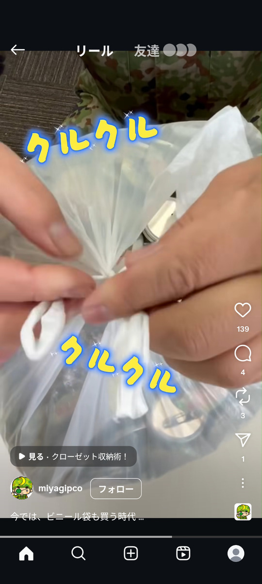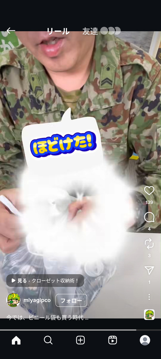 「ビニール袋」の固い結び目、実は楽にほどける! 自衛隊が伝授する“裏ワザ”とは? 自衛隊宮城地方協力本部の公式インスタグラムアカウントより 自衛隊宮城地方協力本部の公式インスタグラムアカウントより 自衛隊宮城地方協力本部の公式インスタグラムアカウントより 自衛隊宮城地方協力本部の公式インスタグラムアカウントより 自衛隊宮城地方協力本部の公式インスタグラムアカウントより 自衛隊宮城地方協力本部の公式インスタグラムアカウントより 自衛隊宮城地方協力本部の公式インスタグラムアカウントより 自衛隊宮城地方協力本部の公式インスタグラムアカウントより 自衛隊宮城地方協力本部の公式インスタグラムアカウントより 自衛隊宮城地方協力本部の公式インスタグラムアカウントより 自衛隊宮城地方協力本部の公式インスタグラムアカウントより 自衛隊宮城地方協力本部の公式インスタグラムアカウントより 自衛隊宮城地方協力本部の公式インスタグラムアカウントより 自衛隊宮城地方協力本部の公式インスタグラムアカウントより 自衛隊宮城地方協力本部の公式インスタグラムアカウントより 関連記事 “飛び過ぎるバット”の発想を応用したドライバーの実力を検証 (PR)ミズノ “ベーコン”みたいな「シャウエッセン」にSNS騒然 「4月1日の投稿かと」「見たことない…」 本間ゴルフ・小川社長が語る“変革の真意” 「TW777」が示す挑戦の第一歩 (PR)本間ゴルフ 【漫画】「こんなこと起きる?」認知症の祖母の介護で知った“意外な一面”に「かわいい」「ほっこりする」 【漫画】“女性専用車両”で「今いくつ?彼氏いるの?」ナンパされ、無視した結果… 最悪の展開に「え、怖っ…!」 記事ページに戻る