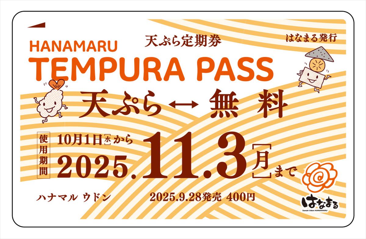 【はなまるうどん】天ぷらorおでん1品“無料”「天ぷらおでん定期券」発売 何度でも、うどん以外でも使える