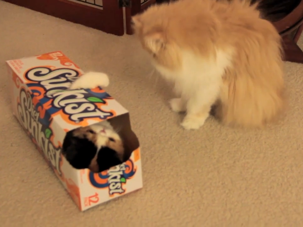「油断大敵なのニャ!」段ボールの中からおもちゃを狙う“策士な子猫”がかわいい!「ストレスが吹き飛ぶ」視聴者が絶賛