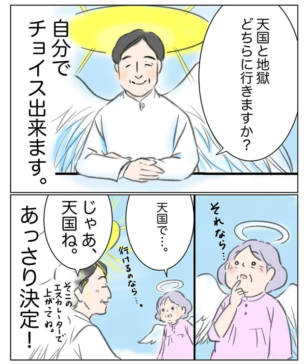 【漫画】「死んだらどうなる?」 天国か地獄かを“自分で選べる世界”に「心が軽くなった」と反響続々 漫画「天国と地獄」(福絵さん提供) 漫画「天国と地獄」(福絵さん提供) 漫画「天国と地獄」(福絵さん提供) 漫画「天国と地獄」(福絵さん提供) 漫画「天国と地獄」(福絵さん提供) 漫画「天国と地獄」(福絵さん提供) 漫画「天国と地獄」(福絵さん提供) 漫画「天国と地獄」(福絵さん提供) 漫画「天国と地獄」(福絵さん提供) 漫画「天国と地獄」(福絵さん提供) 漫画「天国と地獄」(福絵さん提供) 漫画「天国と地獄」(福絵さん提供) 漫画「天国と地獄」(福絵さん提供) 漫画「天国と地獄」(福絵さん提供) 漫画「天国と地獄」(福絵さん提供) 漫画「天国と地獄」(福絵さん提供) 漫画「天国と地獄」(福絵さん提供) 漫画「天国と地獄」(福絵さん提供) 関連記事 “飛び過ぎるバット”の発想を応用したドライバーの実力を検証 (PR)ミズノ 入浴は寝る何時間前? ぐっすり眠るための常識とは…意外と知らない照明&コーヒーの落とし穴 本間ゴルフ・小川社長が語る“変革の真意” 「TW777」が示す挑戦の第一歩 (PR)本間ゴルフ レギュラーコーヒーの“かす”をそのまま捨てるのはもったいない! 味の素AGFが紹介する「再利用法」に「知らなかった」 【漫画】「さらわれた?」目を離した隙に消えた息子…母を襲った“恐怖の10分間”→救世主現る! 記事ページに戻る