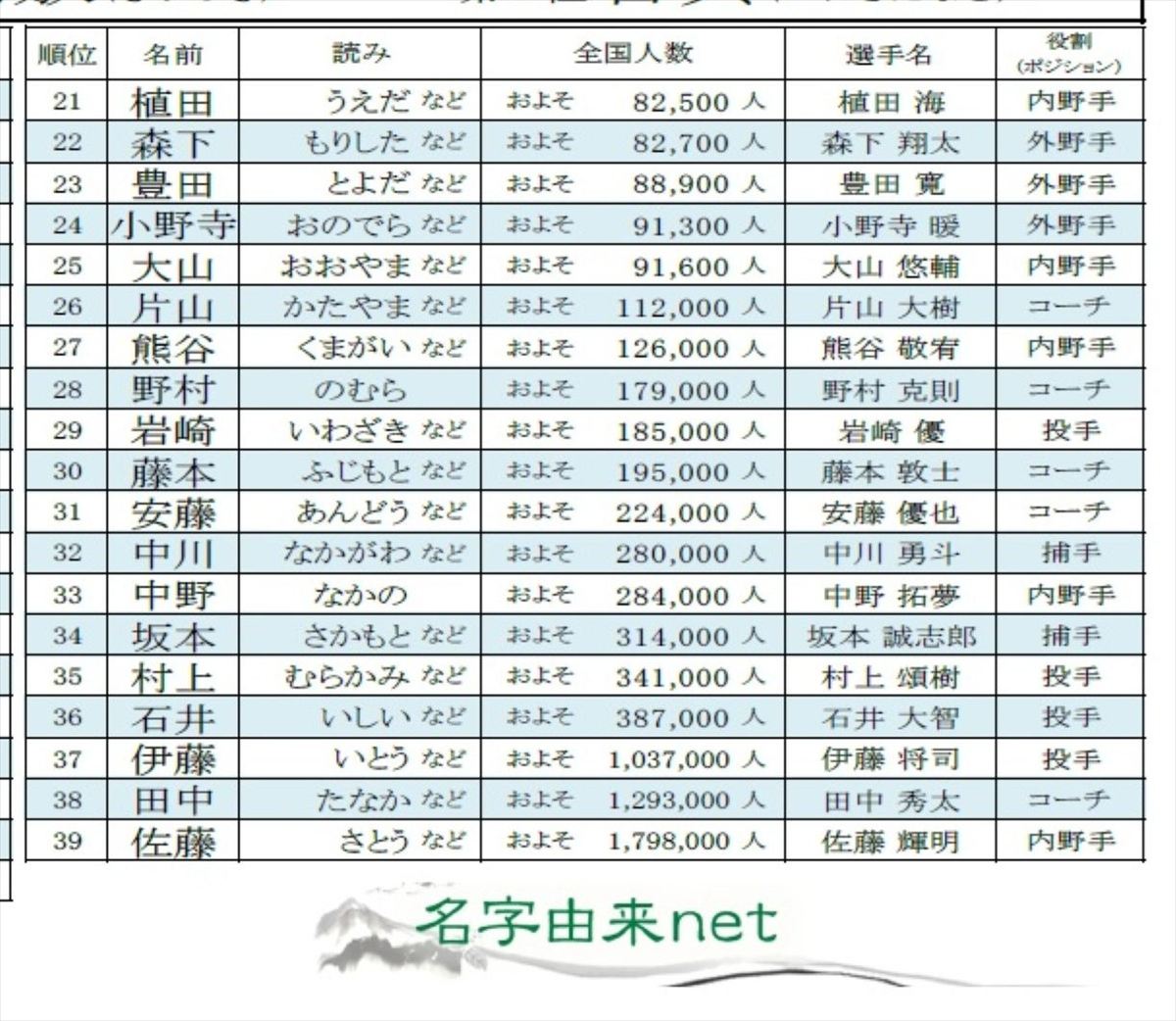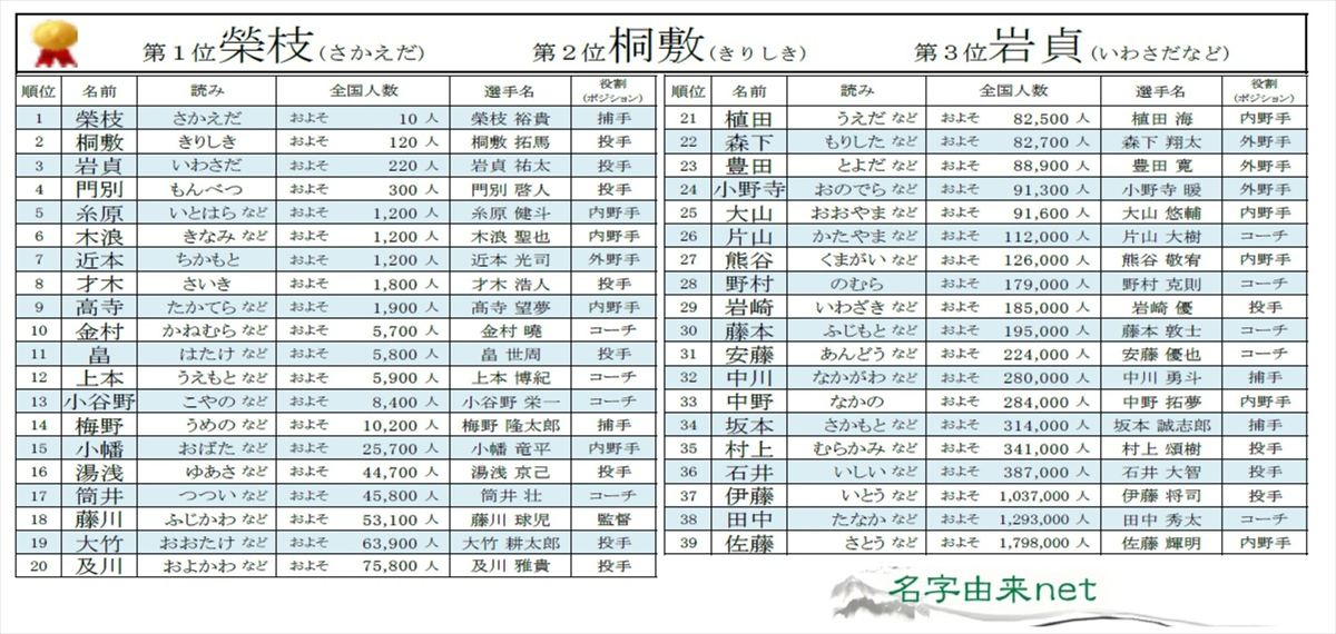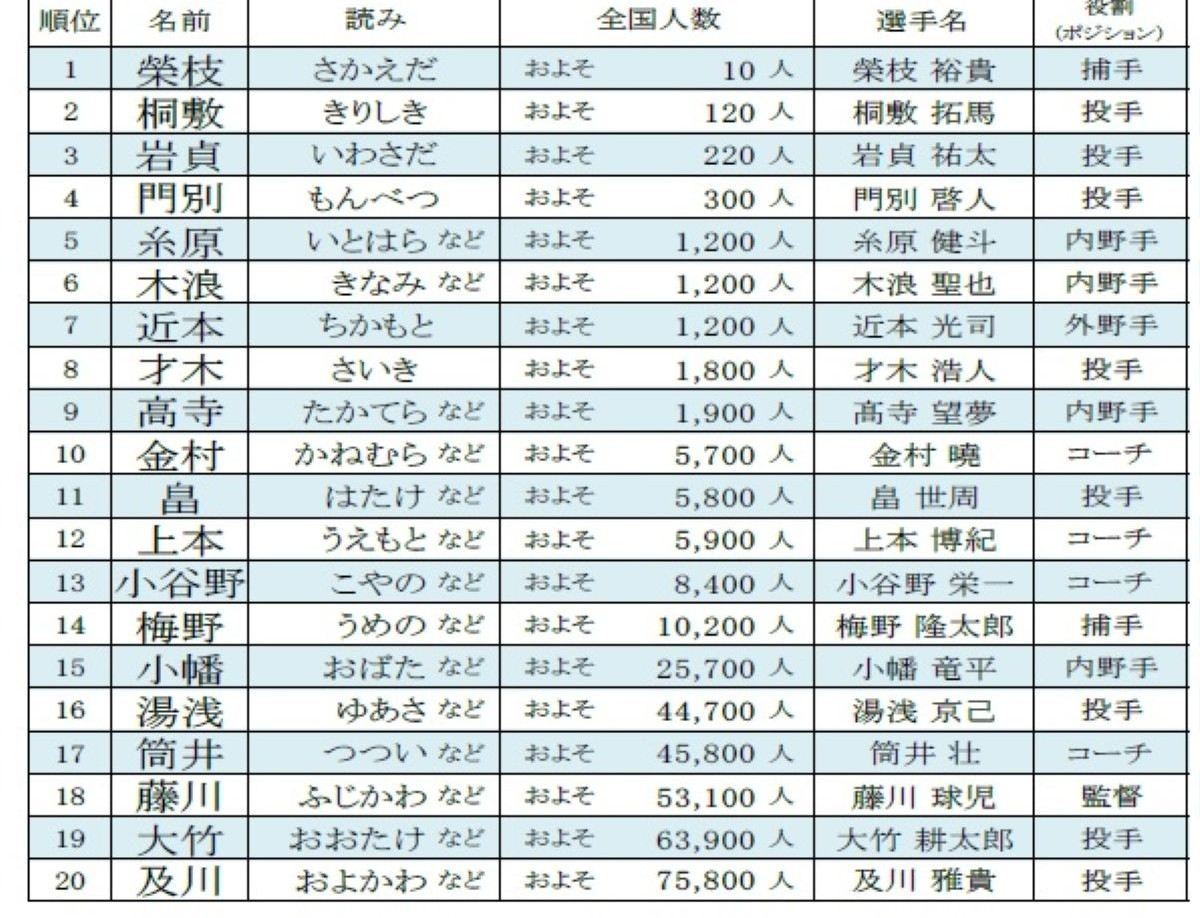 「阪神タイガース」レア名字ランキング 3位「岩貞祐太投手」…2位&1位は?