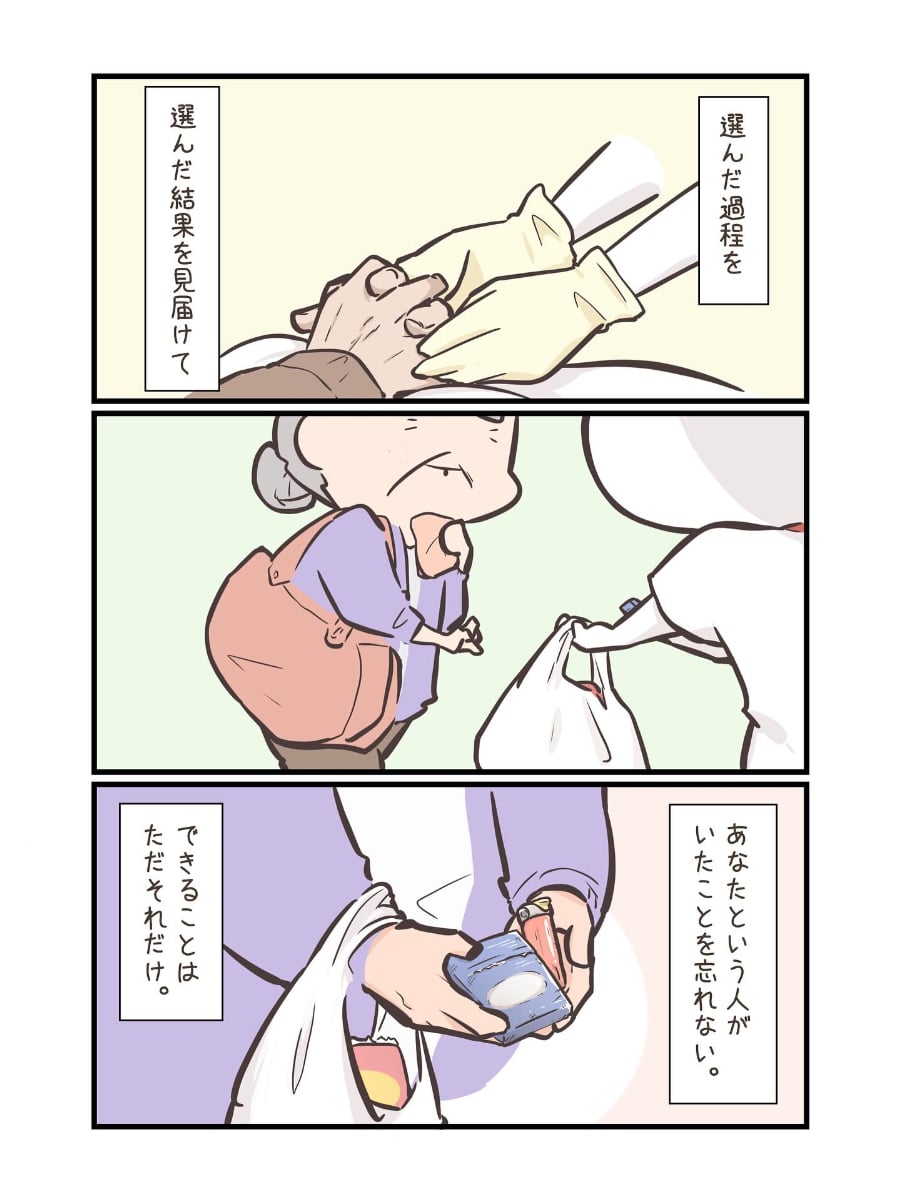 【漫画】「この最期でよかったのか」 看取る度に悩む看護師が、一人の患者さんから得た“気づき” 漫画「さいごを決めたあなたへ」(ツナ看。さん提供) 漫画「さいごを決めたあなたへ」(ツナ看。さん提供) 漫画「さいごを決めたあなたへ」(ツナ看。さん提供) 漫画「さいごを決めたあなたへ」(ツナ看。さん提供) 漫画「さいごを決めたあなたへ」(ツナ看。さん提供) 漫画「さいごを決めたあなたへ」(ツナ看。さん提供) 漫画「さいごを決めたあなたへ」(ツナ看。さん提供) 漫画「さいごを決めたあなたへ」(ツナ看。さん提供) 漫画「さいごを決めたあなたへ」(ツナ看。さん提供) 漫画「さいごを決めたあなたへ」(ツナ看。さん提供) 漫画「さいごを決めたあなたへ」(ツナ看。さん提供) 漫画「さいごを決めたあなたへ」(ツナ看。さん提供) 漫画「さいごを決めたあなたへ」(ツナ看。さん提供) 漫画「さいごを決めたあなたへ」(ツナ看。さん提供) 漫画「さいごを決めたあなたへ」(ツナ看。さん提供) 漫画「さいごを決めたあなたへ」(ツナ看。さん提供) 漫画「さいごを決めたあなたへ」(ツナ看。さん提供) 漫画「さいごを決めたあなたへ」(ツナ看。さん提供) 漫画「さいごを決めたあなたへ」(ツナ看。さん提供) 漫画「さいごを決めたあなたへ」(ツナ看。さん提供) 漫画「さいごを決めたあなたへ」(ツナ看。さん提供) 漫画「さいごを決めたあなたへ」(ツナ看。さん提供) 漫画「さいごを決めたあなたへ」(ツナ看。さん提供) 漫画「さいごを決めたあなたへ」(ツナ看。さん提供) 漫画「さいごを決めたあなたへ」(ツナ看。さん提供) 漫画「さいごを決めたあなたへ」(ツナ看。さん提供) 関連記事 “飛び過ぎるバット”の発想を応用したドライバーの実力を検証 (PR)ミズノ 《アイラップ》で洗い物を出さない、5分で作れる「無限ピーマン」 お弁当・おつまみにも 本間ゴルフ・小川社長が語る“変革の真意” 「TW777」が示す挑戦の第一歩 (PR)本間ゴルフ 任天堂「長い間ゲーム機を使わないと…」“半年に一度”すべきことは? SNS「放置してた」「旧Switchヤバい」 ファミマの“レジ横グルメ”「岩下の新生姜」入り新商品が話題 SNS「リピ確定」「まさに至福の味」 記事ページに戻る