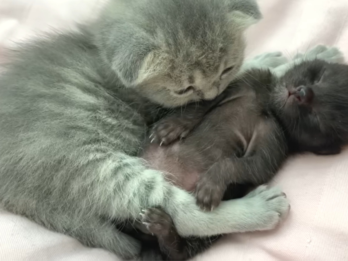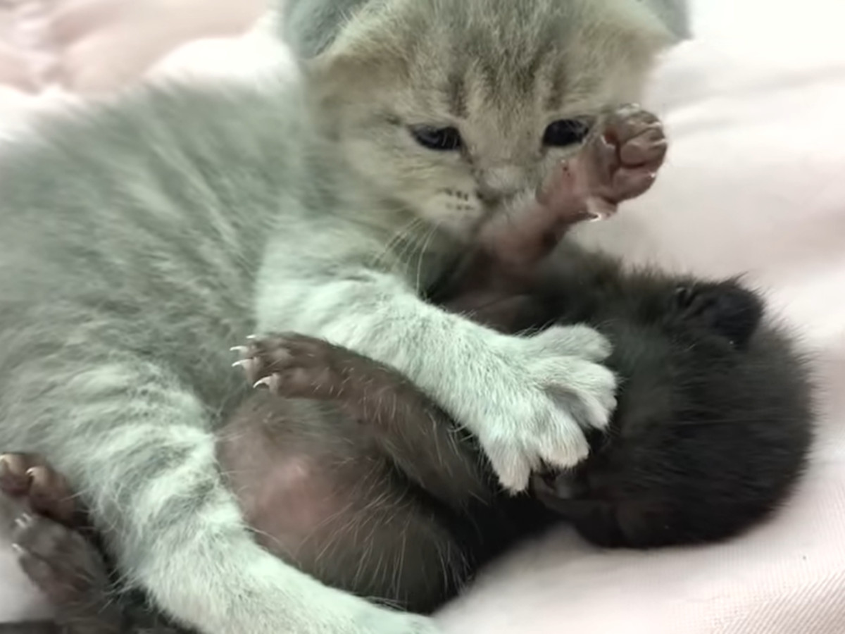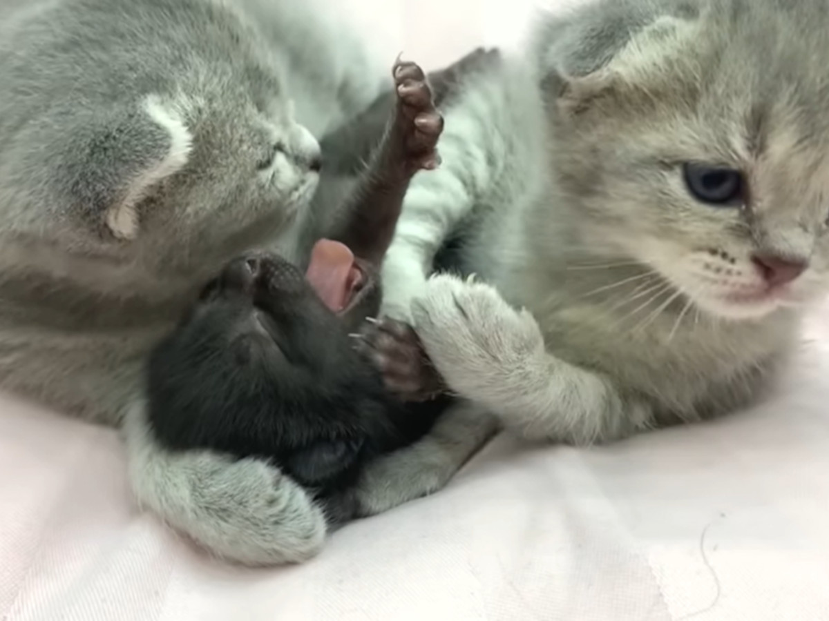子猫が子猫の世話をする…!?母猫がいない時の“驚きの行動”に「なんて優しいお姉さん」視聴者が感動