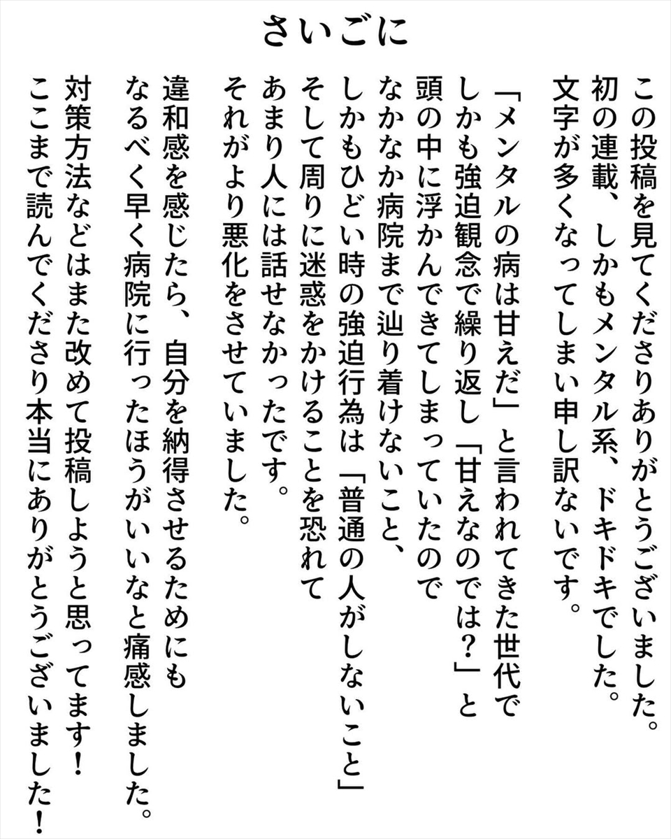 【漫画】「もし病気になったら…」 幸せの絶頂で発症した“強迫性障害” 止まらない不安を受け入れ、前を向くための「備忘録」 漫画「強迫性障害を受け入れるまで」(ねむりひつじさん提供) 漫画「強迫性障害を受け入れるまで」(ねむりひつじさん提供) 漫画「強迫性障害を受け入れるまで」(ねむりひつじさん提供) 漫画「強迫性障害を受け入れるまで」(ねむりひつじさん提供) 漫画「強迫性障害を受け入れるまで」(ねむりひつじさん提供) 漫画「強迫性障害を受け入れるまで」(ねむりひつじさん提供) 漫画「強迫性障害を受け入れるまで」(ねむりひつじさん提供) 漫画「強迫性障害を受け入れるまで」(ねむりひつじさん提供) 漫画「強迫性障害を受け入れるまで」(ねむりひつじさん提供) 漫画「強迫性障害を受け入れるまで」(ねむりひつじさん提供) 漫画「強迫性障害を受け入れるまで」(ねむりひつじさん提供) 漫画「強迫性障害を受け入れるまで」(ねむりひつじさん提供) 漫画「強迫性障害を受け入れるまで」(ねむりひつじさん提供) 漫画「強迫性障害を受け入れるまで」(ねむりひつじさん提供) 漫画「強迫性障害を受け入れるまで」(ねむりひつじさん提供) 漫画「強迫性障害を受け入れるまで」(ねむりひつじさん提供) 漫画「強迫性障害を受け入れるまで」(ねむりひつじさん提供) 漫画「強迫性障害を受け入れるまで」(ねむりひつじさん提供) 漫画「強迫性障害を受け入れるまで」(ねむりひつじさん提供) 漫画「強迫性障害を受け入れるまで」(ねむりひつじさん提供) 漫画「強迫性障害を受け入れるまで」(ねむりひつじさん提供) 漫画「強迫性障害を受け入れるまで」(ねむりひつじさん提供) 漫画「強迫性障害を受け入れるまで」(ねむりひつじさん提供) 漫画「強迫性障害を受け入れるまで」(ねむりひつじさん提供) 漫画「強迫性障害を受け入れるまで」(ねむりひつじさん提供) 漫画「強迫性障害を受け入れるまで」(ねむりひつじさん提供) 漫画「強迫性障害を受け入れるまで」(ねむりひつじさん提供) 漫画「強迫性障害を受け入れるまで」(ねむりひつじさん提供) 漫画「強迫性障害を受け入れるまで」(ねむりひつじさん提供) 漫画「強迫性障害を受け入れるまで」(ねむりひつじさん提供) 漫画「強迫性障害を受け入れるまで」(ねむりひつじさん提供) 漫画「強迫性障害を受け入れるまで」(ねむりひつじさん提供) 漫画「強迫性障害を受け入れるまで」(ねむりひつじさん提供) 漫画「強迫性障害を受け入れるまで」(ねむりひつじさん提供) 漫画「強迫性障害を受け入れるまで」(ねむりひつじさん提供) 漫画「強迫性障害を受け入れるまで」(ねむりひつじさん提供) 漫画「強迫性障害を受け入れるまで」(ねむりひつじさん提供) 漫画「強迫性障害を受け入れるまで」(ねむりひつじさん提供) 漫画「強迫性障害を受け入れるまで」(ねむりひつじさん提供) 漫画「強迫性障害を受け入れるまで」(ねむりひつじさん提供) 漫画「強迫性障害を受け入れるまで」(ねむりひつじさん提供) 漫画「強迫性障害を受け入れるまで」(ねむりひつじさん提供) 漫画「強迫性障害を受け入れるまで」(ねむりひつじさん提供) 漫画「強迫性障害を受け入れるまで」(ねむりひつじさん提供) 漫画「強迫性障害を受け入れるまで」(ねむりひつじさん提供) 漫画「強迫性障害を受け入れるまで」(ねむりひつじさん提供) 関連記事 “飛び過ぎるバット”の発想を応用したドライバーの実力を検証 (PR)ミズノ 入浴は寝る何時間前? ぐっすり眠るための常識とは…意外と知らない照明&コーヒーの落とし穴 本間ゴルフ・小川社長が語る“変革の真意” 「TW777」が示す挑戦の第一歩 (PR)本間ゴルフ レギュラーコーヒーの“かす”をそのまま捨てるのはもったいない! 味の素AGFが紹介する「再利用法」に「知らなかった」 【漫画】「さらわれた?」目を離した隙に消えた息子…母を襲った“恐怖の10分間”→救世主現る! 記事ページに戻る
