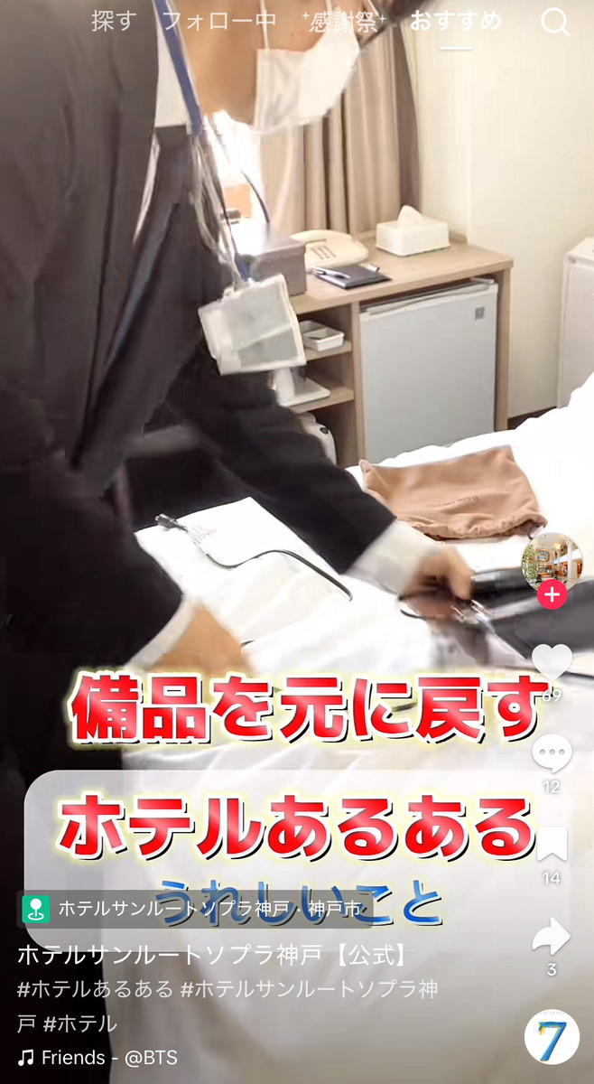 基本的なことだけど…ホテルスタッフが教えるチェックアウト時に“やってほしいこと”に「大事」「勉強になります」 ホテルサンルートソプラ神戸の公式TikTokアカウントより ホテルサンルートソプラ神戸の公式TikTokアカウントより ホテルサンルートソプラ神戸の公式TikTokアカウントより ホテルサンルートソプラ神戸の公式TikTokアカウントより ホテルサンルートソプラ神戸の公式TikTokアカウントより ホテルサンルートソプラ神戸の公式TikTokアカウントより ホテルサンルートソプラ神戸の公式TikTokアカウントより ホテルサンルートソプラ神戸の公式TikTokアカウントより ホテルサンルートソプラ神戸の公式TikTokアカウントより ホテルサンルートソプラ神戸の公式TikTokアカウントより ホテルサンルートソプラ神戸の公式TikTokアカウントより ホテルサンルートソプラ神戸の公式TikTokアカウントより ホテルサンルートソプラ神戸の公式TikTokアカウントより 関連記事 “飛び過ぎるバット”の発想を応用したドライバーの実力を検証 (PR)ミズノ 【漫画】「こんなこと起きる?」認知症の祖母の介護で知った“意外な一面”に「かわいい」「ほっこりする」 本間ゴルフ・小川社長が語る“変革の真意” 「TW777」が示す挑戦の第一歩 (PR)本間ゴルフ 【漫画】“女性専用車両”で「今いくつ?彼氏いるの?」ナンパされ、無視した結果… 最悪の展開に「え、怖っ…!」 入浴は寝る何時間前? ぐっすり眠るための常識とは…意外と知らない照明&コーヒーの落とし穴 記事ページに戻る
