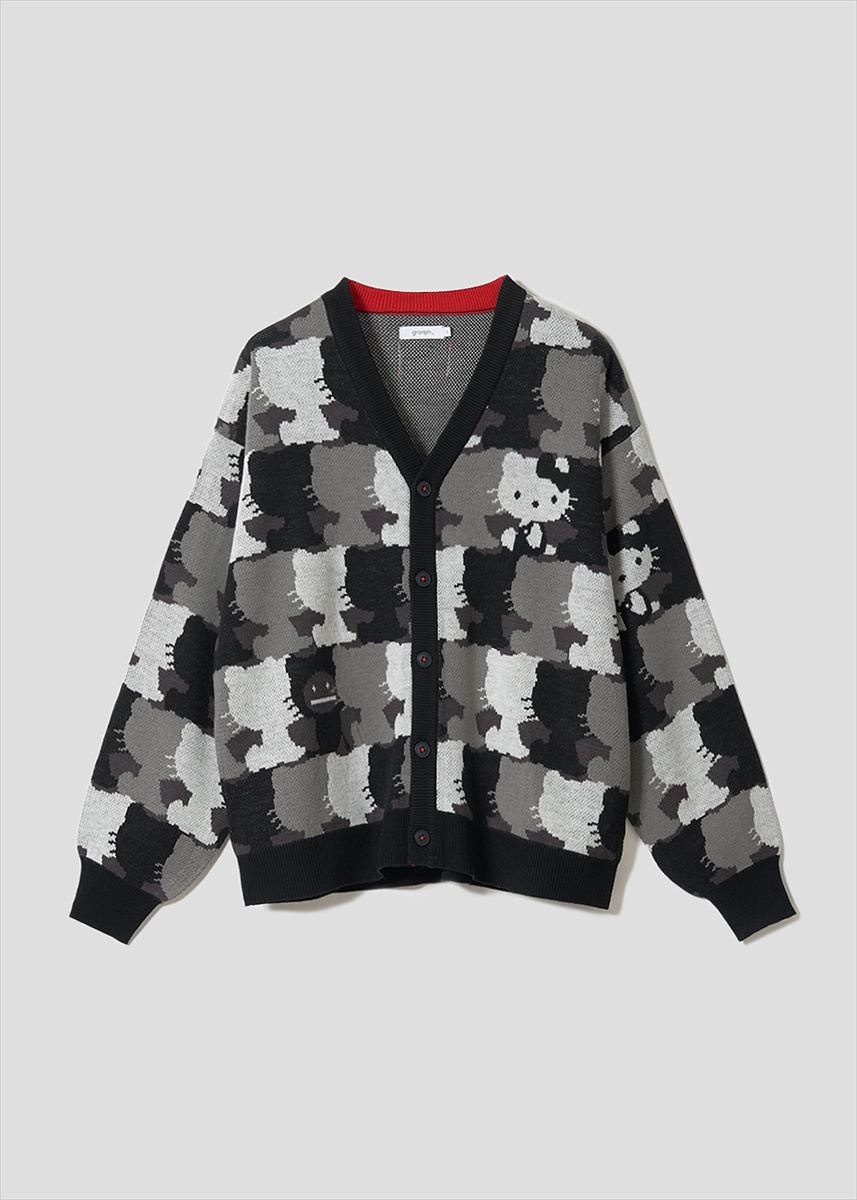 「キティ シルエットパターン/ジャカードVネックカーディガン」(7900円)(C)2026 SANRIO CO., LTD. APPROVAL NO. L664481