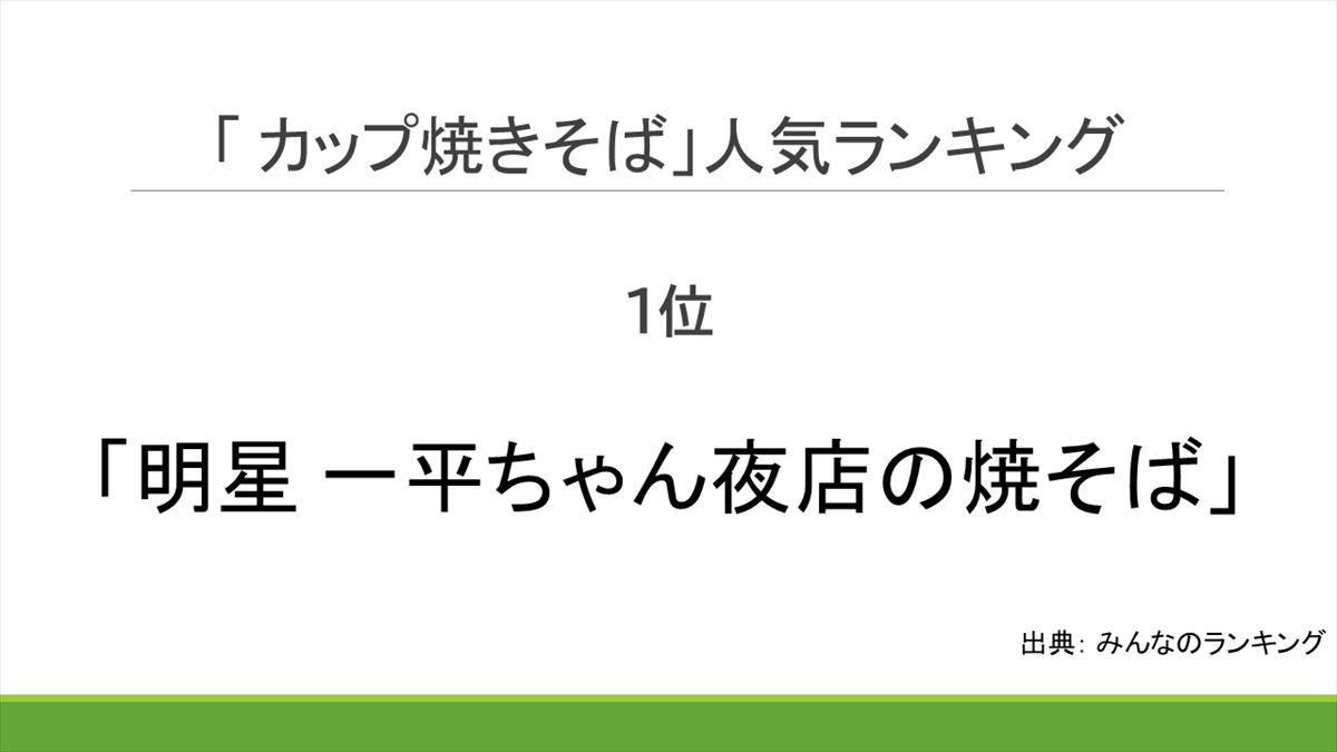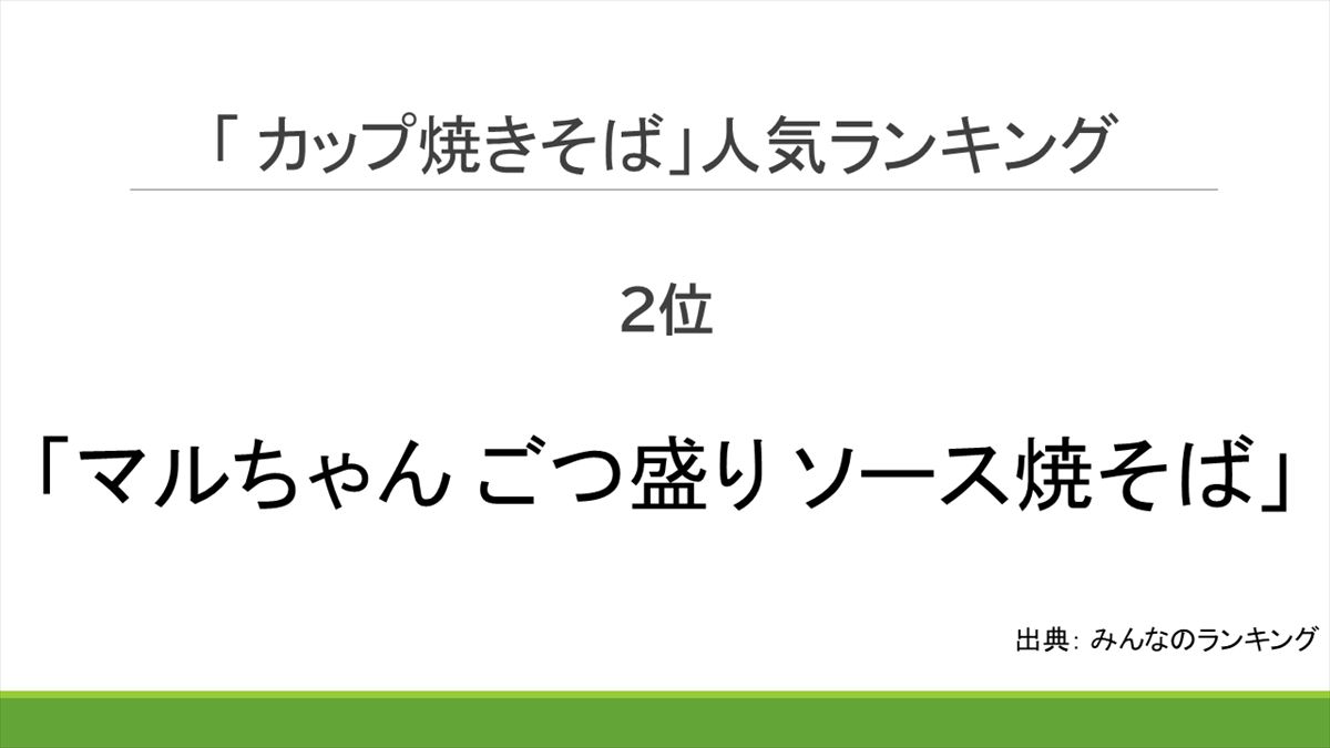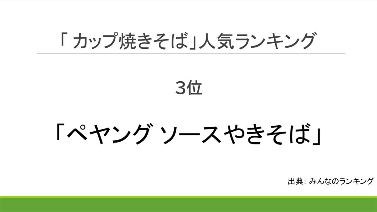 「カップ焼きそば」人気ランキング 3位「ペヤング ソースやきそば」2位「ごつ盛り ソース焼そば」…1位は? ※出典:みんなのランキング(順位は2026年2月18日時点) ※出典:みんなのランキング(順位は2026年2月18日時点) ※出典:みんなのランキング(順位は2026年2月18日時点) ※出典:みんなのランキング(順位は2026年2月18日時点) ※出典:みんなのランキング(順位は2026年2月18日時点) ※出典:みんなのランキング(順位は2026年2月18日時点) ※出典:みんなのランキング(順位は2026年2月18日時点) ※出典:みんなのランキング(順位は2026年2月18日時点) ※出典:みんなのランキング(順位は2026年2月18日時点) ※出典:みんなのランキング(順位は2026年2月18日時点) 「カップ焼きそば」人気ランキング 関連記事 “飛び過ぎるバット”の発想を応用したドライバーの実力を検証 (PR)ミズノ 【かっぱ寿司】4日間限定「トクトクメニュー」販売 「仮面ライダーゼッツ」コラボカードもらえる 本間ゴルフ・小川社長が語る“変革の真意” 「TW777」が示す挑戦の第一歩 (PR)本間ゴルフ “野菜成分入り菓子&ジュース”は野菜を食べたことになる? 管理栄養士に聞いて分かった“納得”の結果 【セブンイレブン】「アイスクリームの日」向けに抹茶アイス3品発売 夜の“自分時間”の需要取り込みへ 記事ページに戻る