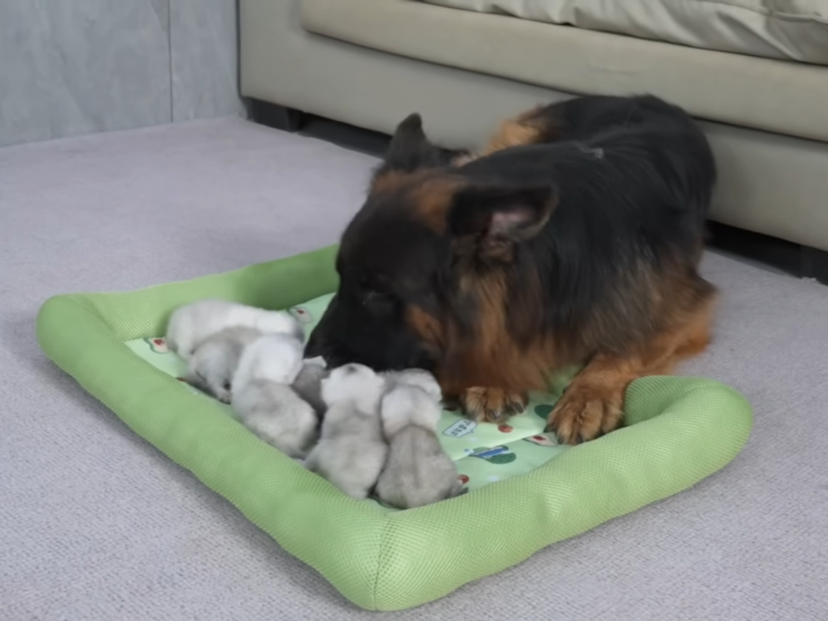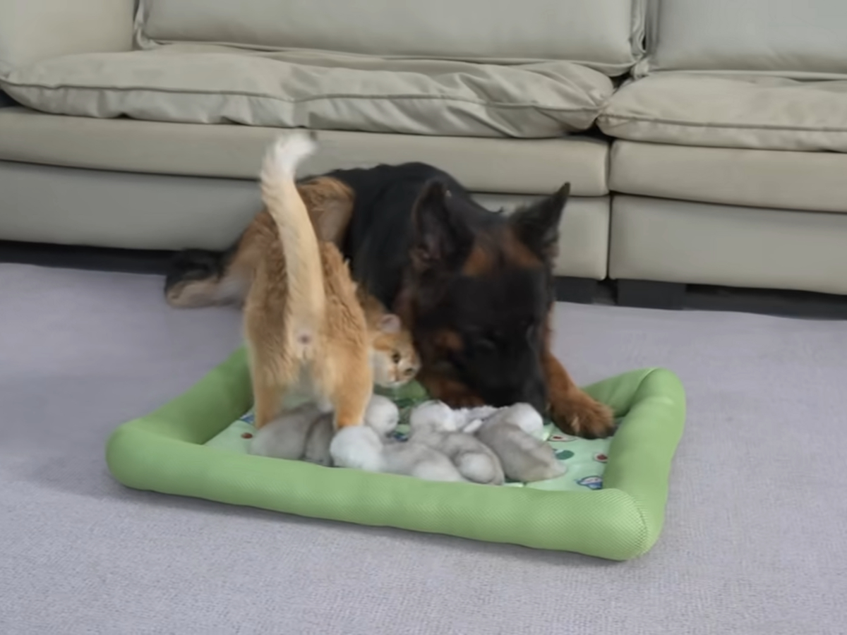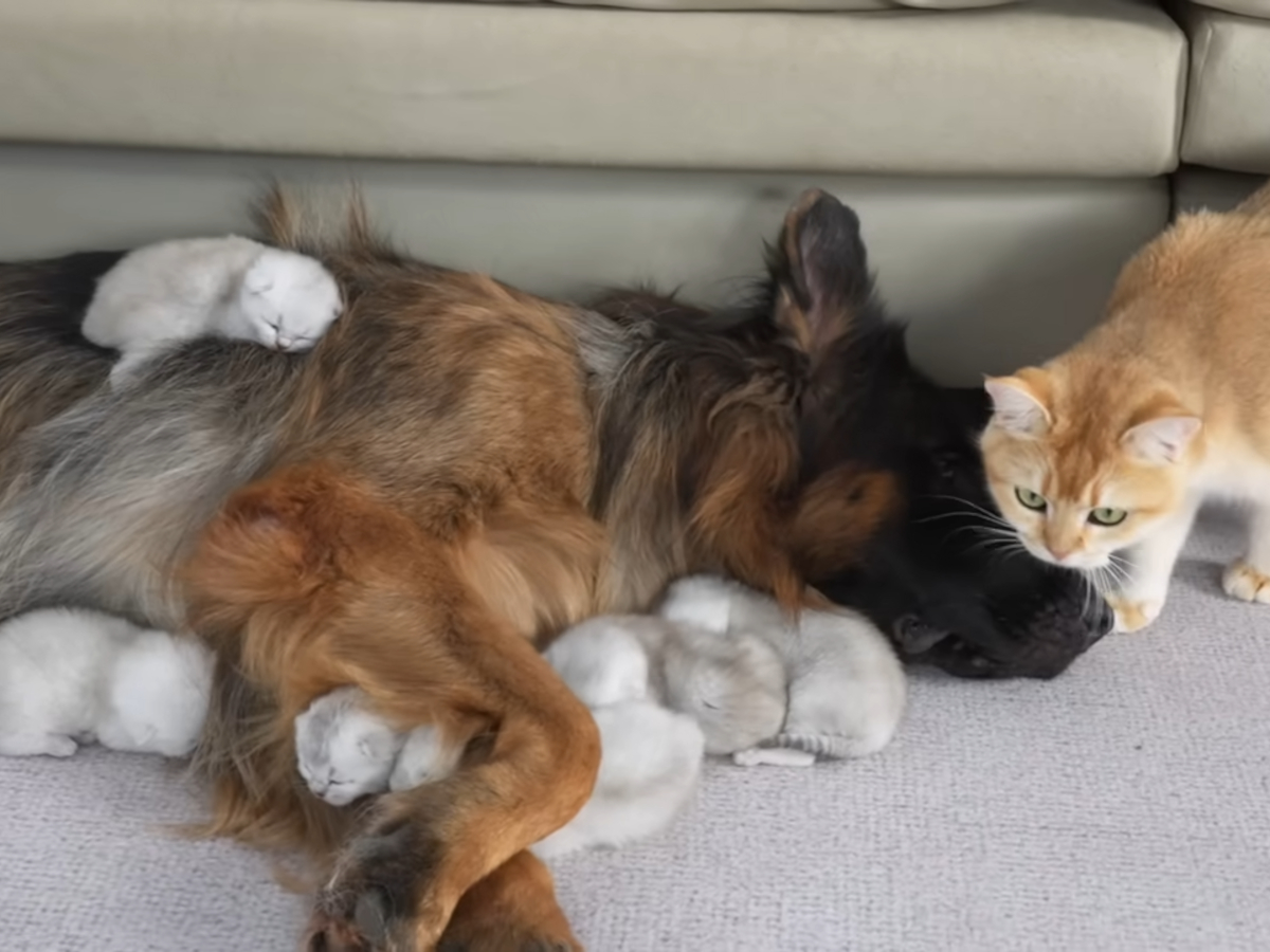 「あとはお願いニャン…」 母猫から子守りを託された大型犬→あまりに深すぎる“愛情”表現に視聴者が感動!