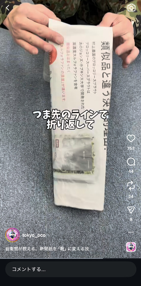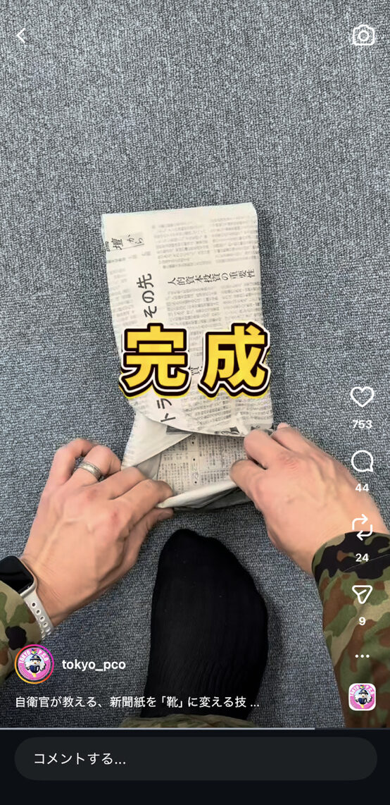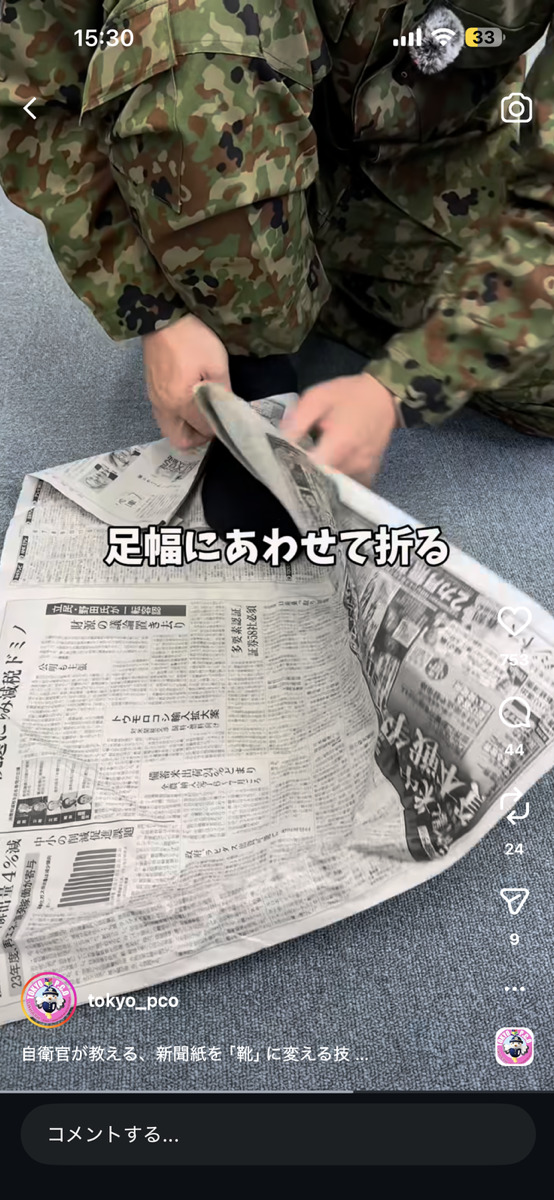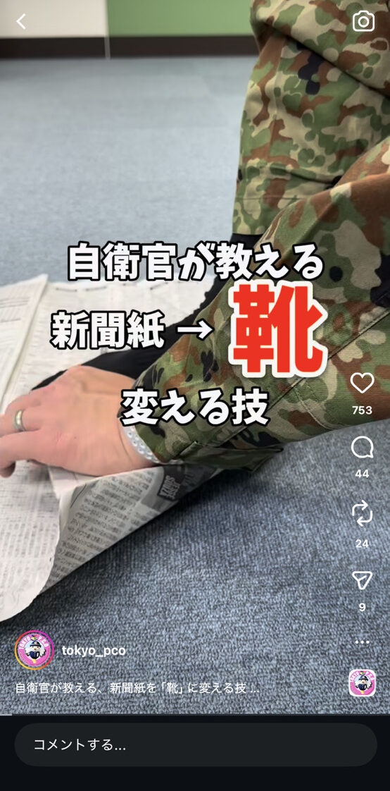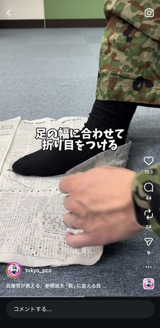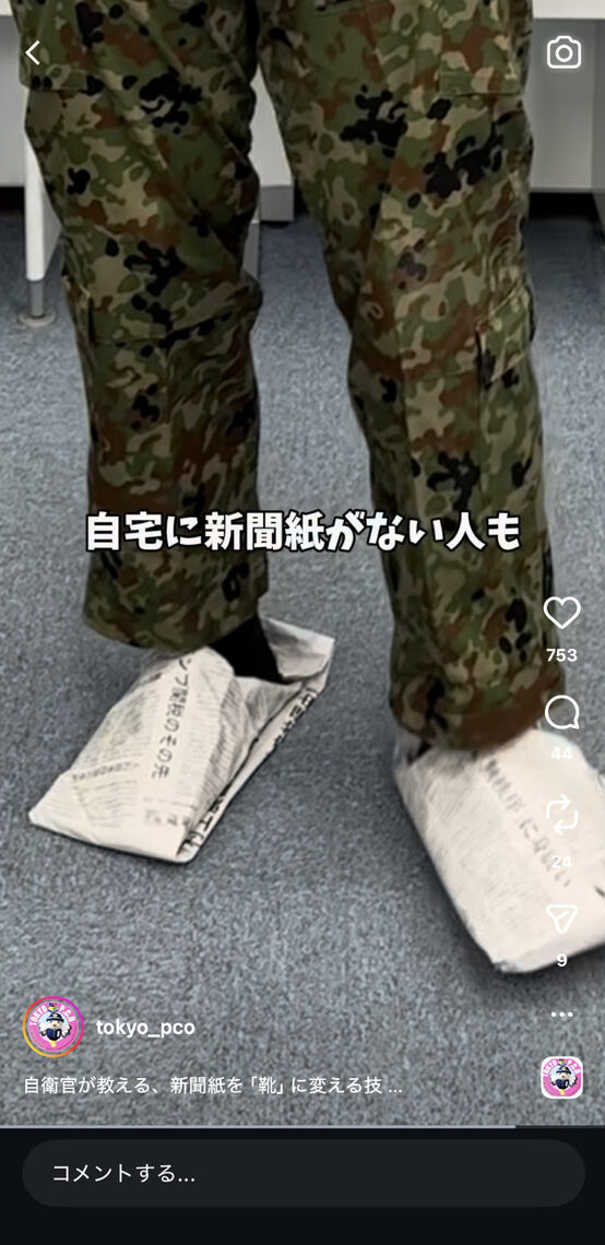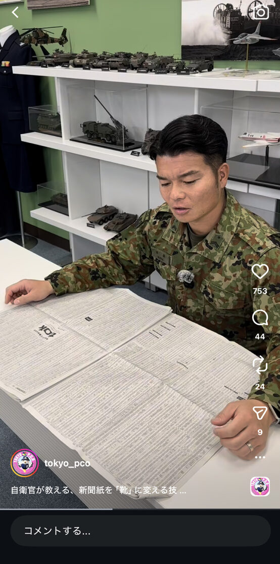 【東日本大震災から15年】新聞紙が靴に大変身! 自衛隊が伝授する、避難所で使える“裏ワザ”に「すごーい!」 自衛隊東京地方協力本部の公式インスタグラムアカウントより 自衛隊東京地方協力本部の公式インスタグラムアカウントより 自衛隊東京地方協力本部の公式インスタグラムアカウントより 自衛隊東京地方協力本部の公式インスタグラムアカウントより 自衛隊東京地方協力本部の公式インスタグラムアカウントより 自衛隊東京地方協力本部の公式インスタグラムアカウントより 自衛隊東京地方協力本部の公式インスタグラムアカウントより 自衛隊東京地方協力本部の公式インスタグラムアカウントより 自衛隊東京地方協力本部の公式インスタグラムアカウントより 自衛隊東京地方協力本部の公式インスタグラムアカウントより 自衛隊東京地方協力本部の公式インスタグラムアカウントより 自衛隊東京地方協力本部の公式インスタグラムアカウントより 自衛隊東京地方協力本部の公式インスタグラムアカウントより 自衛隊東京地方協力本部の公式インスタグラムアカウントより 自衛隊東京地方協力本部の公式インスタグラムアカウントより 自衛隊東京地方協力本部の公式インスタグラムアカウントより 自衛隊東京地方協力本部の公式インスタグラムアカウントより 自衛隊東京地方協力本部の公式インスタグラムアカウントより 自衛隊東京地方協力本部の公式インスタグラムアカウントより 自衛隊東京地方協力本部の公式インスタグラムアカウントより 自衛隊東京地方協力本部の公式インスタグラムアカウントより 自衛隊東京地方協力本部の公式インスタグラムアカウントより 自衛隊東京地方協力本部の公式インスタグラムアカウントより 自衛隊東京地方協力本部の公式インスタグラムアカウントより 関連記事 “飛び過ぎるバット”の発想を応用したドライバーの実力を検証 (PR)ミズノ ナトリウムイオン電池「航空機への持ち込み不可」に…没収の恐れ エレコムの注意喚起にネット衝撃「リチウムより厳しい」 本間ゴルフ・小川社長が語る“変革の真意” 「TW777」が示す挑戦の第一歩 (PR)本間ゴルフ 【バーガーキング】ワッパーを片手できれいに!“裏技”に反響 SNS「知らなかった」「試してみます」 「あらあら~おやおや~」ハンズ公式の“におわせ”投稿が昭和生まれ直撃 80万表示の反響「懐かしすぎ!」 記事ページに戻る