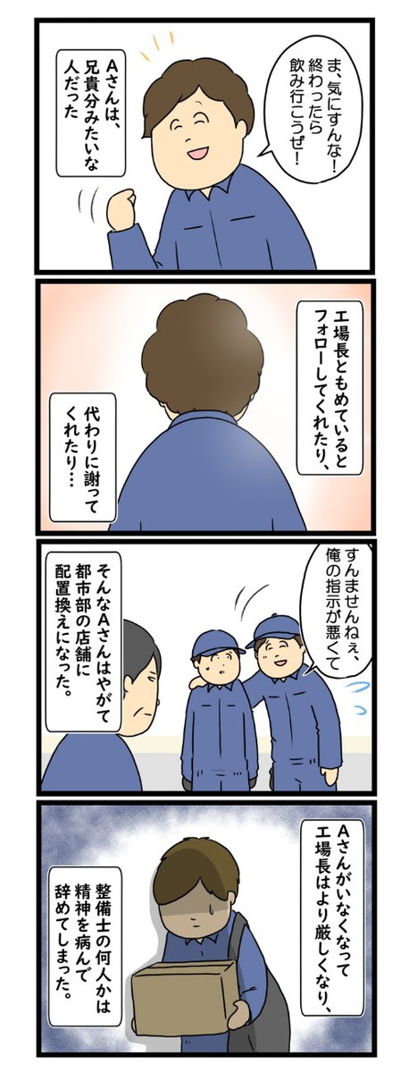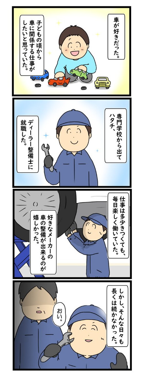 【漫画】「口答えすんな!」怒鳴る工場長と壊れていく先輩… 整備士が絶望した“地獄の職場”に「これが日常なの?」 漫画「車が好きで就職した整備士を絶望して退職するまで」(リス山さん提供) 漫画「車が好きで就職した整備士を絶望して退職するまで」(リス山さん提供) 漫画「車が好きで就職した整備士を絶望して退職するまで」(リス山さん提供) 漫画「車が好きで就職した整備士を絶望して退職するまで」(リス山さん提供) 漫画「車が好きで就職した整備士を絶望して退職するまで」(リス山さん提供) 漫画「車が好きで就職した整備士を絶望して退職するまで」(リス山さん提供) 漫画「車が好きで就職した整備士を絶望して退職するまで」(リス山さん提供) 漫画「車が好きで就職した整備士を絶望して退職するまで」(リス山さん提供) 漫画「車が好きで就職した整備士を絶望して退職するまで」(リス山さん提供) 漫画「車が好きで就職した整備士を絶望して退職するまで」(リス山さん提供) 漫画「車が好きで就職した整備士を絶望して退職するまで」(リス山さん提供) 漫画「車が好きで就職した整備士を絶望して退職するまで」(リス山さん提供) 漫画「車が好きで就職した整備士を絶望して退職するまで」(リス山さん提供) 漫画「車が好きで就職した整備士を絶望して退職するまで」(リス山さん提供) 漫画「車が好きで就職した整備士を絶望して退職するまで」(リス山さん提供) 漫画「車が好きで就職した整備士を絶望して退職するまで」(リス山さん提供) 漫画「車が好きで就職した整備士を絶望して退職するまで」(リス山さん提供) 漫画「車が好きで就職した整備士を絶望して退職するまで」(リス山さん提供) 漫画「車が好きで就職した整備士を絶望して退職するまで」(リス山さん提供) 漫画「車が好きで就職した整備士を絶望して退職するまで」(リス山さん提供) 漫画「車が好きで就職した整備士を絶望して退職するまで」(リス山さん提供) 漫画「車が好きで就職した整備士を絶望して退職するまで」(リス山さん提供) 関連記事 “飛び過ぎるバット”の発想を応用したドライバーの実力を検証 (PR)ミズノ 【漫画】思春期に捨てたはずの“学校の工作” 数十年後、亡き父から届いた贈り物に2.3万人「涙があふれた」 本間ゴルフ・小川社長が語る“変革の真意” 「TW777」が示す挑戦の第一歩 (PR)本間ゴルフ 浴室のピンク汚れ、正体は細菌!? 増殖防ぐために「最後に出る人」がすべき2つのこととは【TOTOが紹介】 【漫画】「35年ローンが突如ゼロに!?」新居購入から半年… “予期せぬ完済”の顛末に「うらやましくない…」 記事ページに戻る