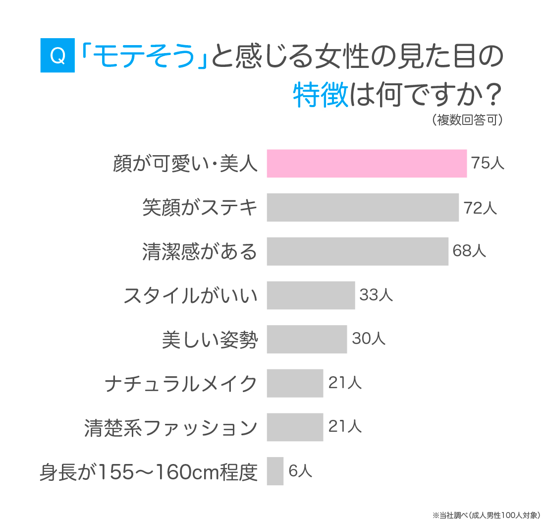 男性100人が答えた《モテそう》な女性 「顔がかわいい」に次ぐ…“見た目”の特徴とは?