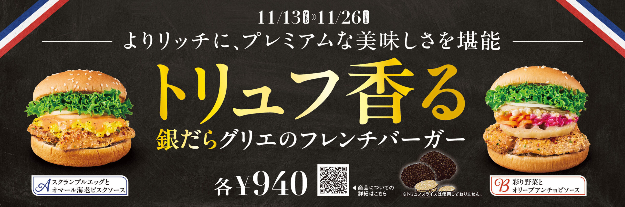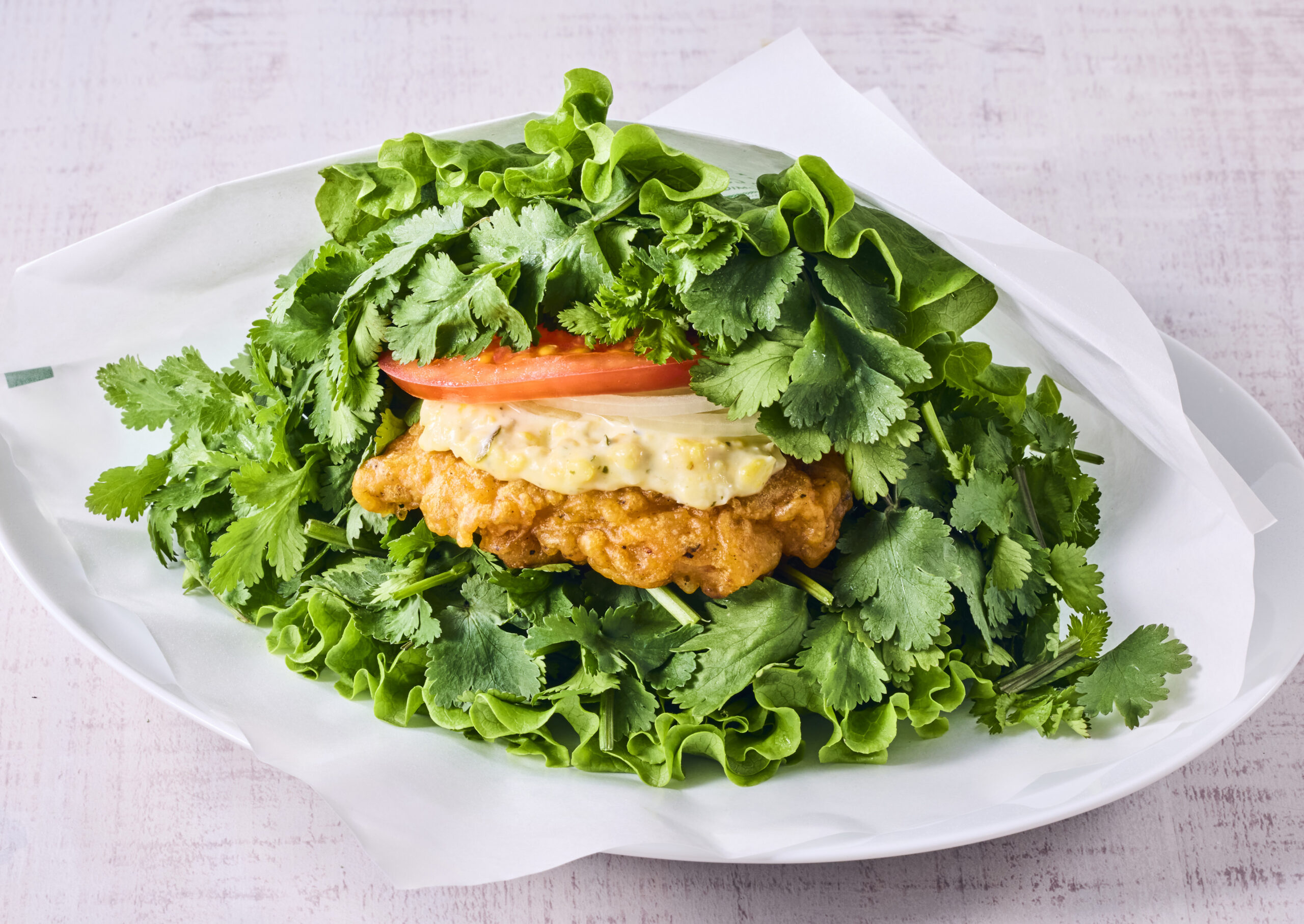 今回登場する「海老 増し増し ガーリックシュリンプバーガー」は、程よいガーリックの風味と濃厚なタルタルソースのおいしさが楽しめる一品。紫キャベツマリネが爽やかなアクセントになっています。