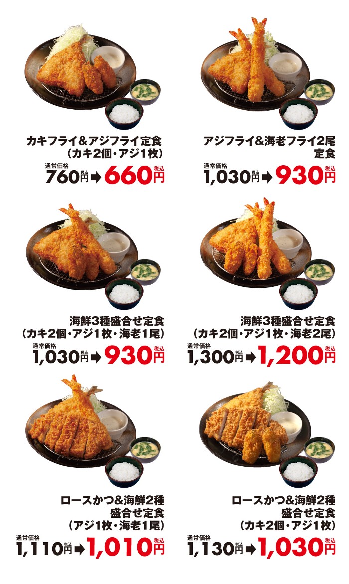 松のや、「カキフライ&アジフライ定食」など“海鮮盛り”6品が100円引き! 10月19日まで実施