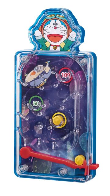 おもちゃは、ドラえもんのしっぽを押すと台の雲が回る「ドラえもんの雲スピナー」、迷路遊びができる「ドラえもんのゆらゆら飛行機迷路」、しっぽを押すとタケコプターが回る「空飛ぶ!タケコプター」のほか「ドラえもんの浮かぶ飛行機」「タイムトラベルピンボールゲーム」「ドラえもんのウォーターリングゲーム」の全6種類。