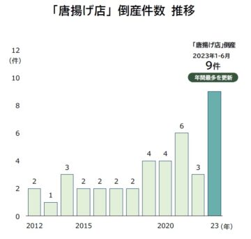 帝国データバンクが、「唐揚げ店」の倒産発生状況についての調査結果を発表。倒産件数が“過去最多”を更新したことが分かりました。