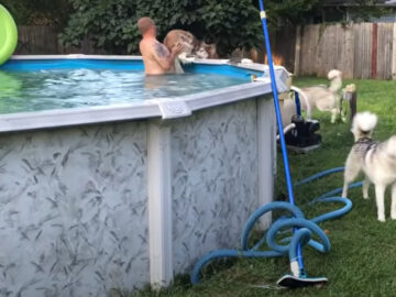 水遊びが大好きなワンちゃんも多くいるものですが、YouTubeチャンネル「Rachel Morgan」では、ハスキー犬がプールを掃除中のパパに“おねだり”する様子が配信され、動画のコメント欄には「こんなに興奮しているハスキー見たことない」「みんなでプールに入りたがってる姿がかわいくて面白い」との声が続出しました。