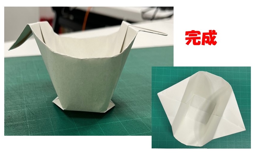 (7)開きながら底になる部分を作っていく。その際、底の外側は三角に折って立つようにする。