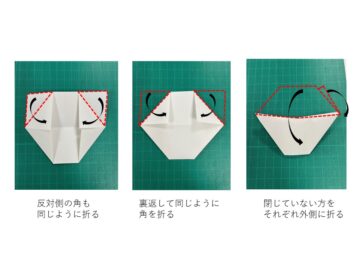 (6)閉じていない方をそれぞれ外側に折る。