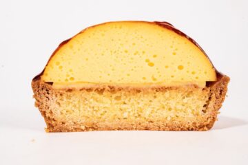 「プリンタルト」は、ほろっとした食感のタルトに、カスタードとドーム型のプリンをのせた商品。味のアクセントにカラメルソースをかけています。今年、流行の兆しをみせているという、スイーツの上にプリンをのせる「のっけプリン」を表現した、“今までにない見た目”のスイーツとなっています。価格は298円。