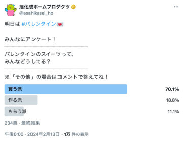 各アンケートの結果とあわせて、レシピや裏技も紹介している同アカウント。例えば「バレンタインは手作りする?」というアンケートを行った際は、「余ったバターの小分け冷凍技」を投稿しています。
