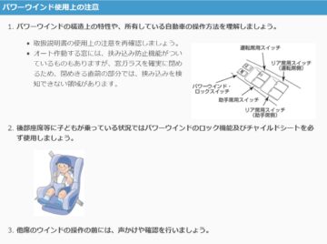 (1)パワーウインドーの構造上の特性や、所有している自動車の操作方法を理解すること