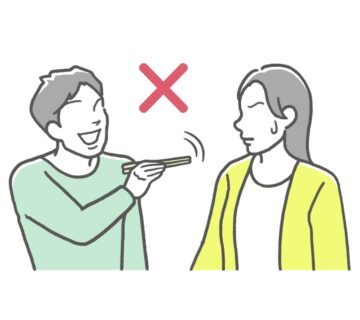 箸で人や料理を指すこと。少し乱暴で軽んじている印象を与えます。指で指すこともやめましょう。