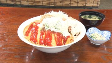 その他、米2合にたっぷりと自家製カレーをかけ、さらに特製ダレに漬けたしょうゆ唐揚げをのせた「満腹唐揚げカレー」(1100円)、ソーセージ、ピーマン、タマネギをトマトケチャップであえた米1キロに、しょうゆ唐揚げ、タルタルソースをのせた「満腹オムライ丼」(1250円)、ナポリタン220グラムに、豚ロースカツ、自家製チキンカレーをかけた「ナポリスパかつ定食」(1200円)などが人気になっています。