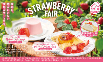 また、スシローでは、フレッシュなイチゴが楽しめる「STRAWBERRY FAIR(ストロベリー・フェア)」も2月19日から開始。ブリュレ仕立てにしたクレープとイチゴを盛り合わせた「フレッシュ苺&ミルクアイスのクレープブリュレ包み」(330円~)、イチゴ果汁と、口どけがなめらかな食感が特長のパンナコッタを楽しめる「フレッシュ苺と苺のパンナコッタ」(260円~)、和風仕立ての「フレッシュ苺&あずきのパフェ」(330円~)が新発売されます。