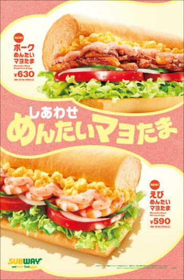サブウェイ“めんたいマヨ”味を初めて発売 「えびめんたいマヨたま」「ポークめんたいマヨたま」新登場