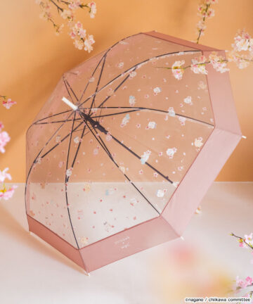 ビニール傘「ちいかわ お花見」は、ちいかわ、ハチワレ、うさぎ、モモンガ、古本屋が桜の花びらとたわむれる様が描かれています。サイズは61センチ。価格は2860円です。