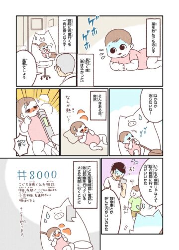 生後6カ月の頃、せきが出るようになり風邪と診断された娘。なかなか回復せずにいたある日、高熱が出てしまいます。病院で診察を受けたところRSウイルス陽性と分かり、そのまま入院したのですが、重篤化したためICUに…。